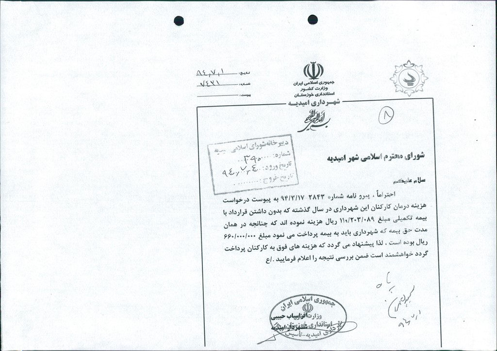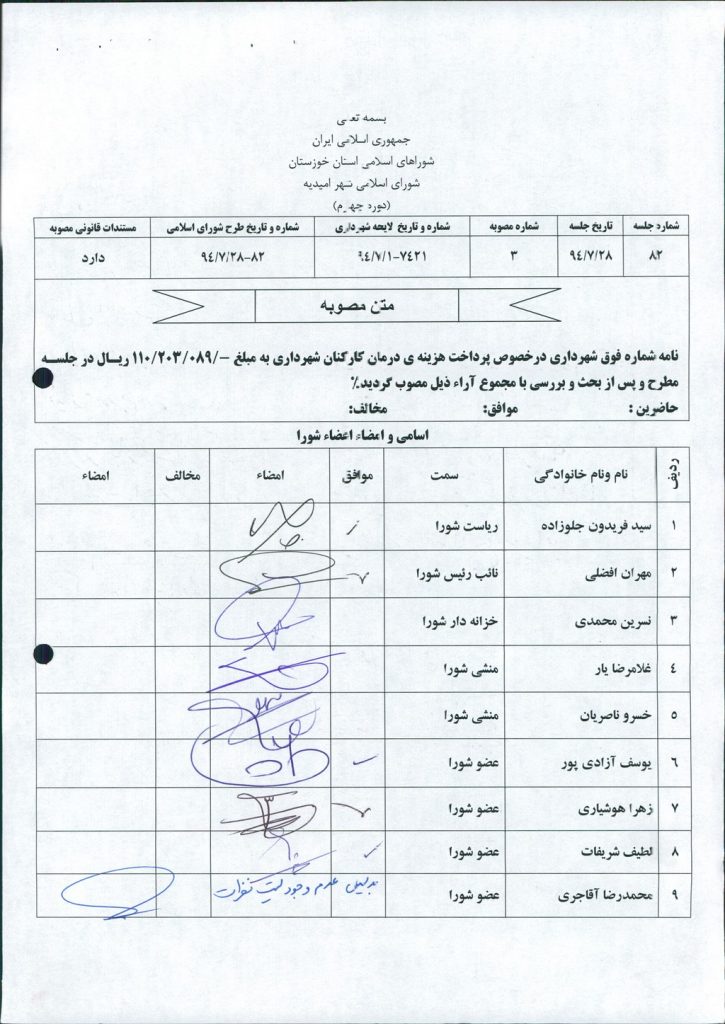 مصوبه شماره ۳ جلسه شماره ۸۲ شورای اسلامی شهر امیدیه