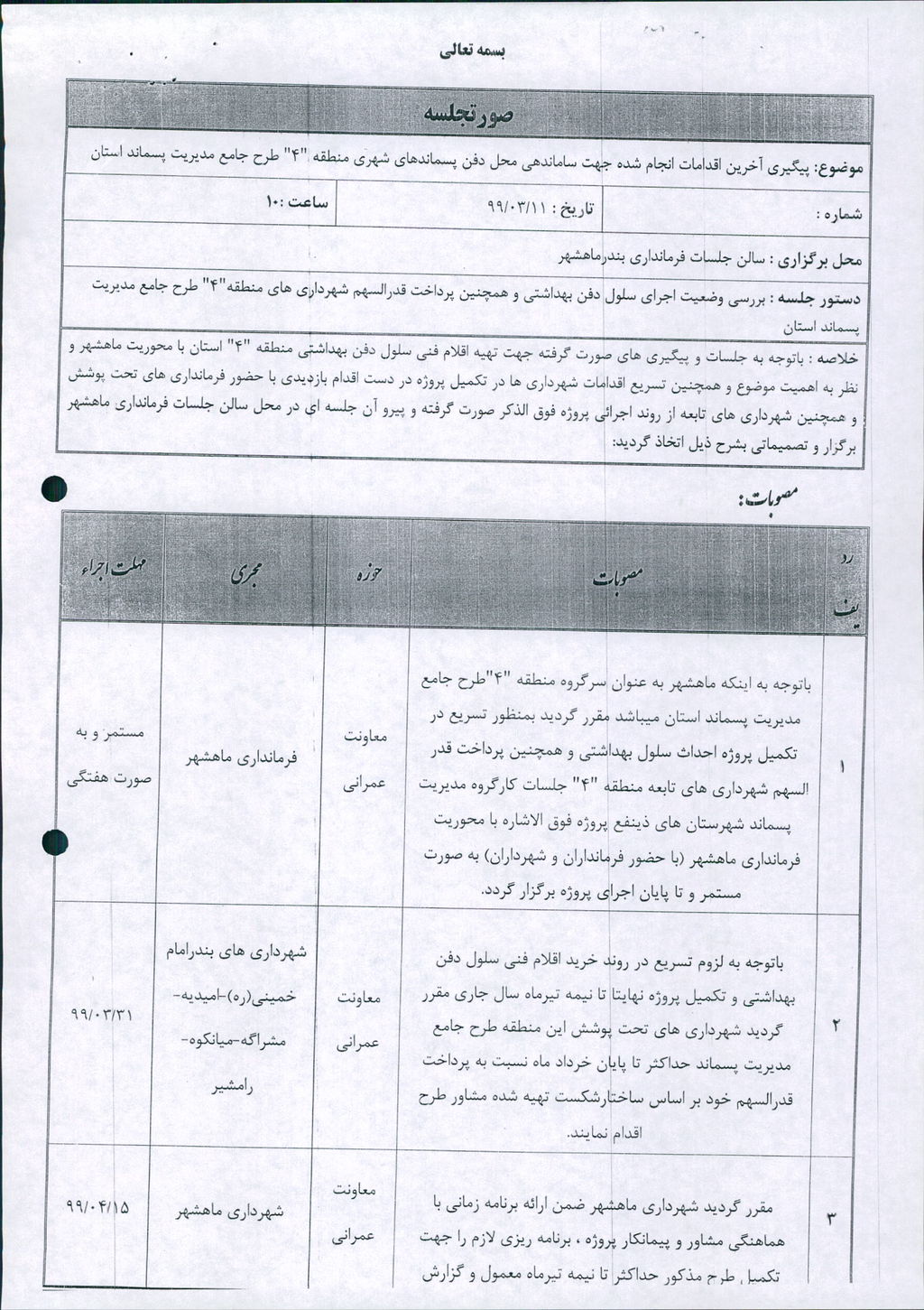 مصوبه شماره ۳جلسه شماره ۹۰ شورای اسلامی شهر امیدیه