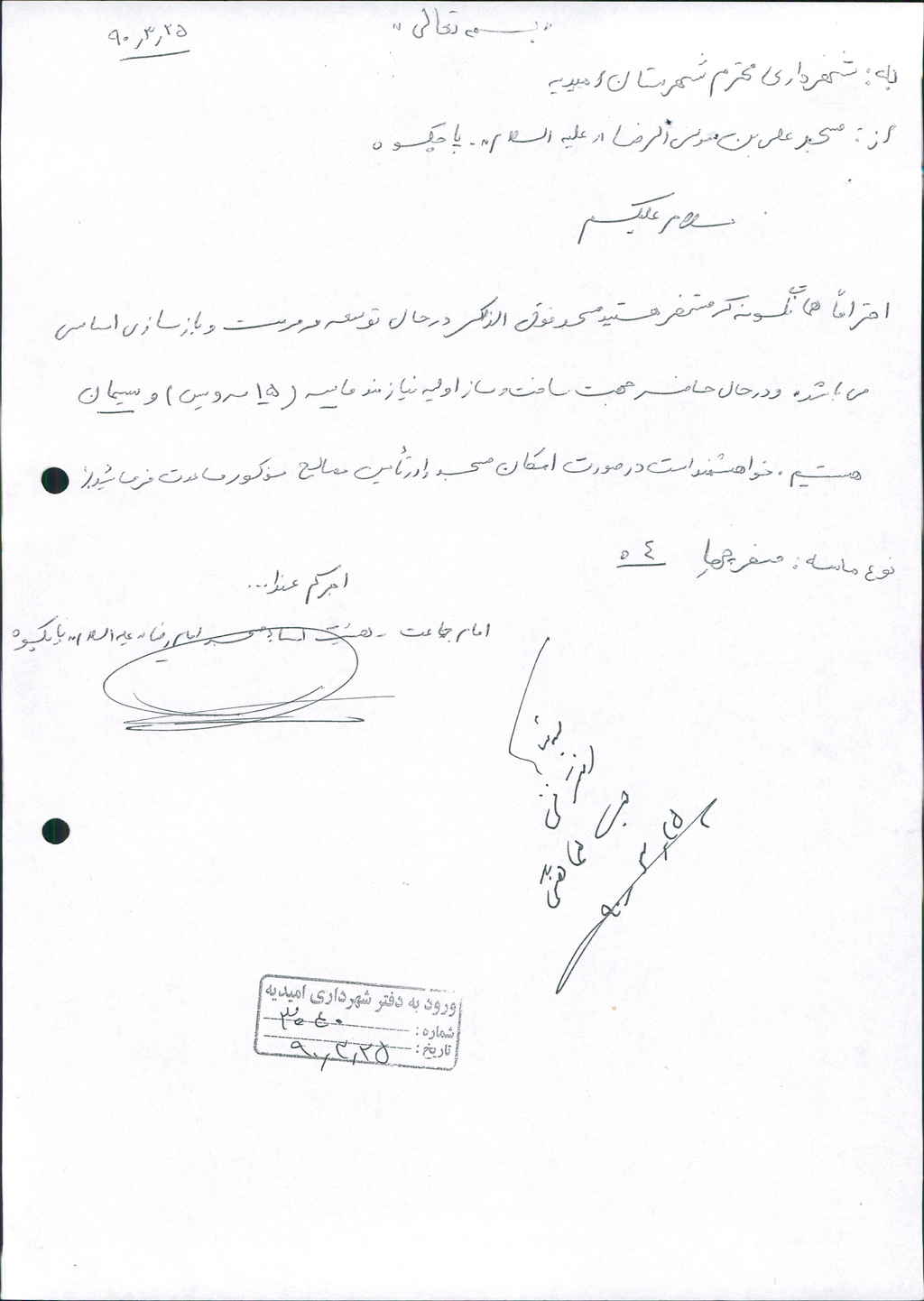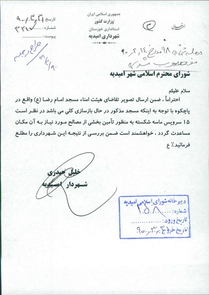 مصوبه شماره ۳ جلسه شماره ۹۸ مورخ ۹۰/۴/۱۴ شورای اسلامی شهر امیدیه