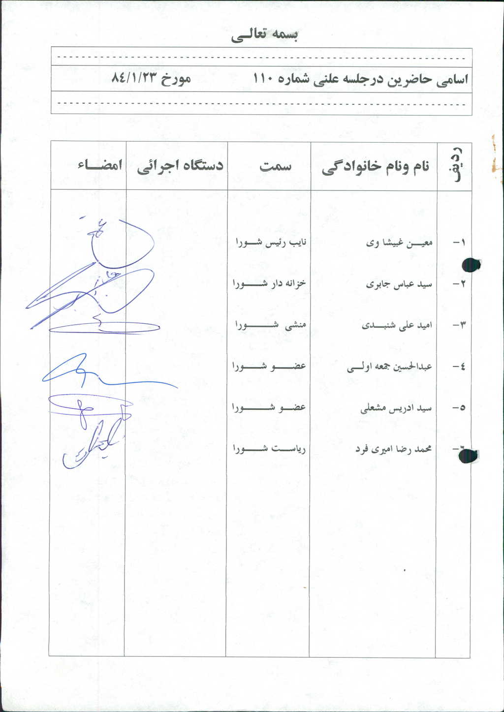 مصوبه شماره ۴ جلسه شماره ۱۱۰ شورای اسلامی شهر امیدیه