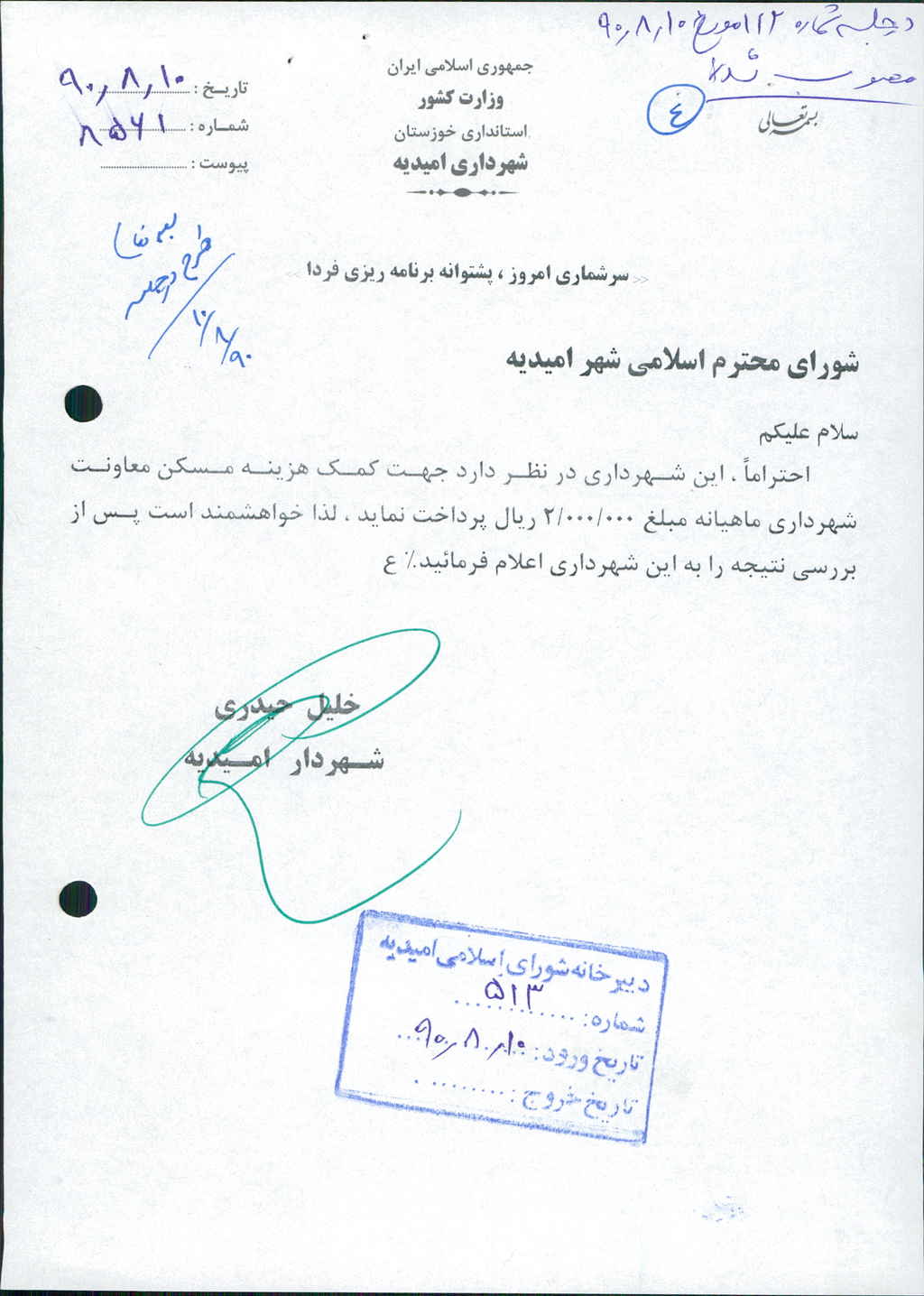 نویسنده شورای اسلامی شهر امیدیه