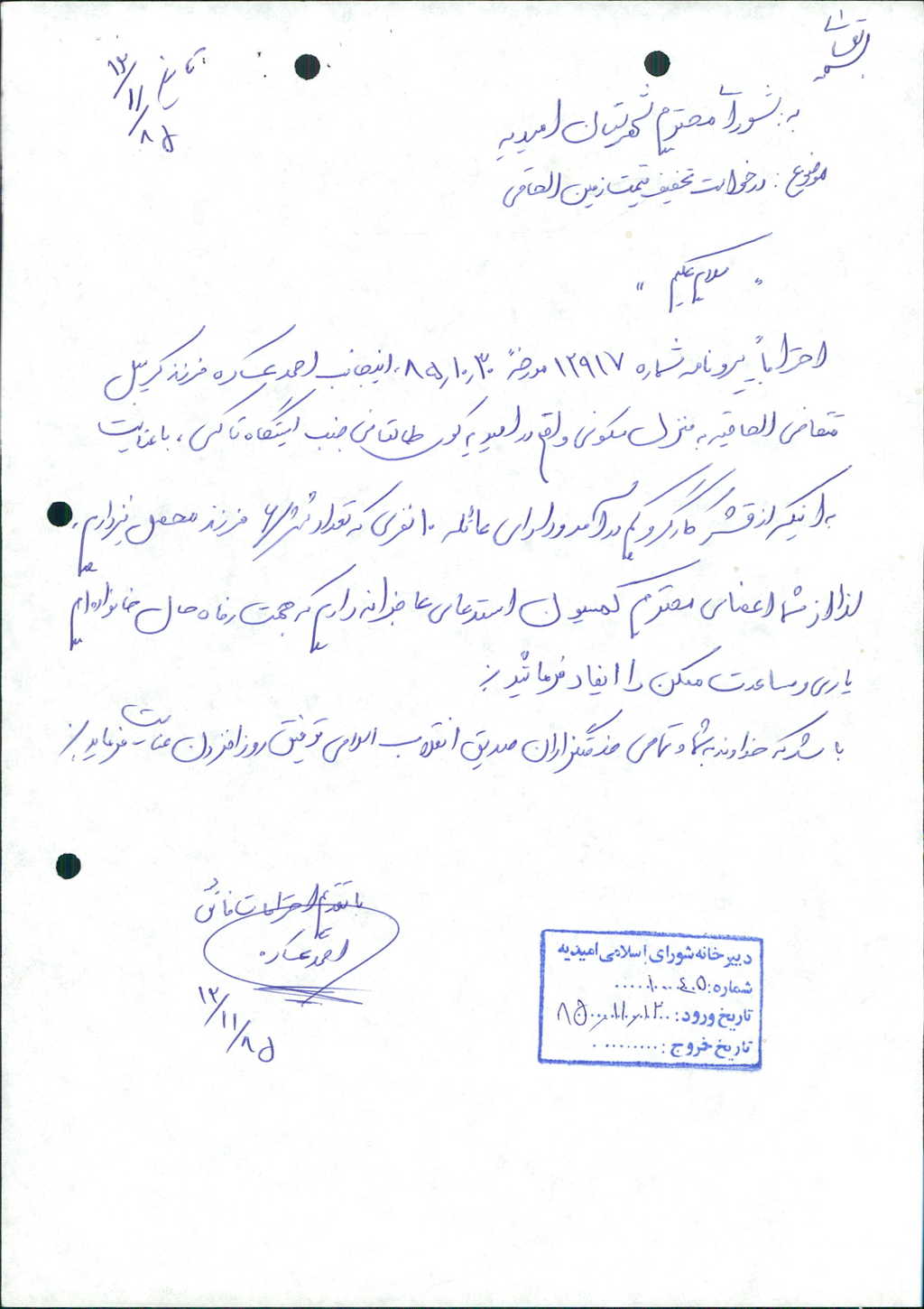 مصوبه شماره ۴ جلسه شماره ۱۵۹ مورخ ۸۵/۱۱/۱۸ شورای اسلامی شهر امیدیه