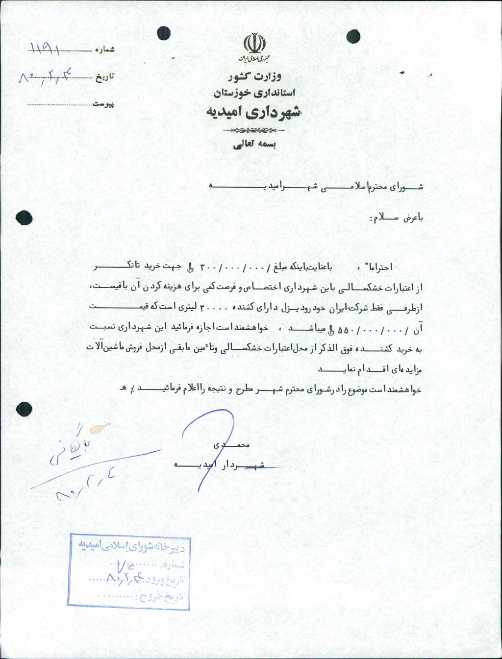 مصوبه شماره ۴ جلسه شماره ۱۷۶ شورای اسلامی شهر امیدیه