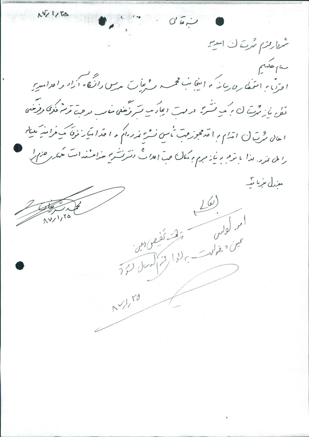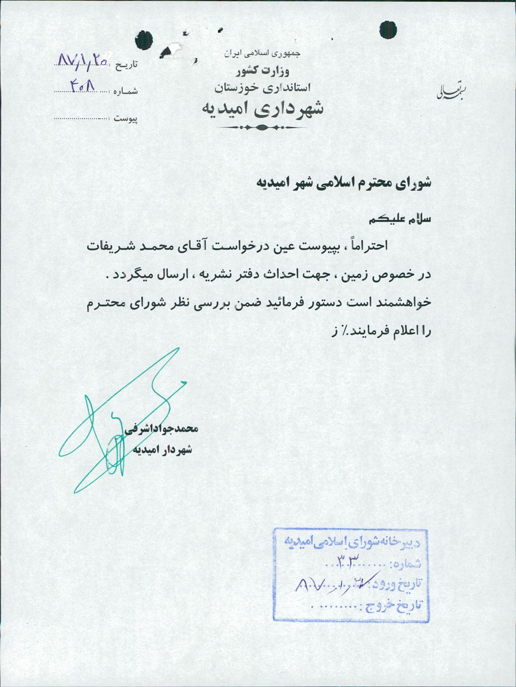 موضوع : در خصوص واگذاري قطعه زمين جهت نشريه .