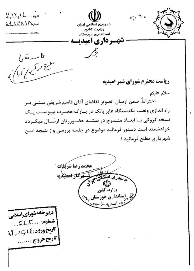 مصوبه شماره ۴ جلسه شماره ۲۵ شورای اسلامی شهر امیدیه