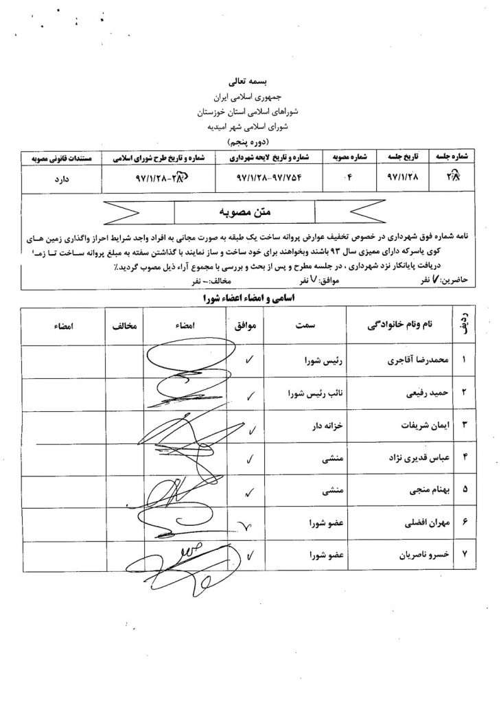 مصوبه شماره ۴ جلسه شماره ۲۸ شورای اسلامی شهر امیدیه