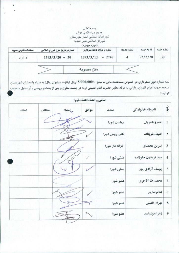 مصوبه شماره ۴ جلسه شماره ۳۰ شورای اسلامی شهر امیدیه