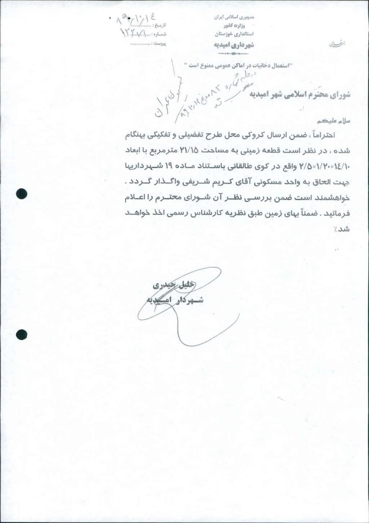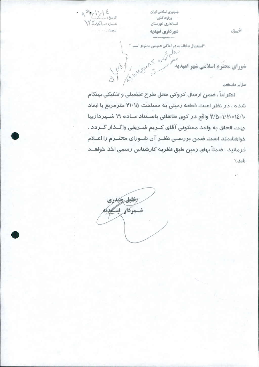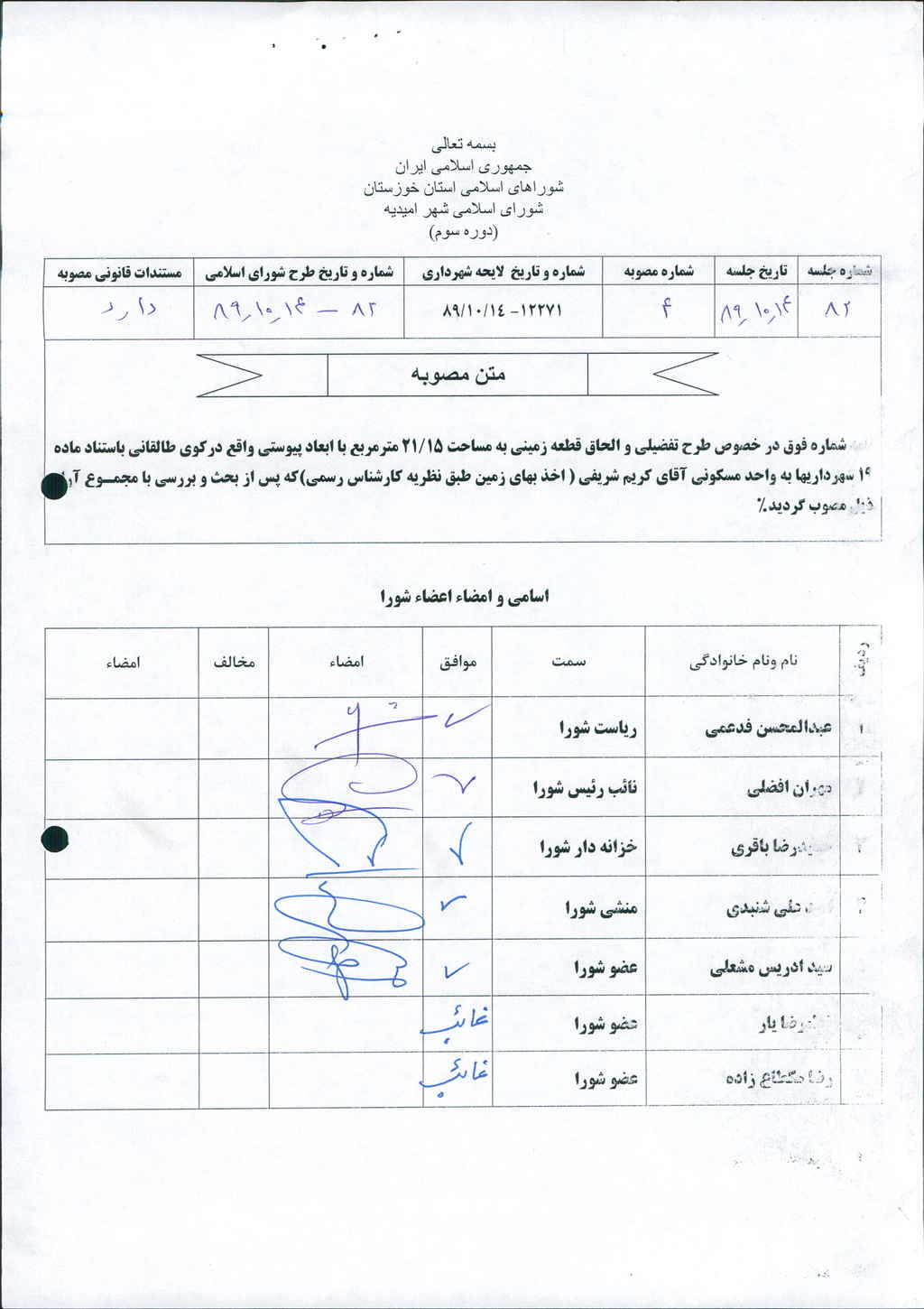 مصوبه شماره ۴ جلسه شماره ۸۱ شورای اسلامی شهر امیدیه