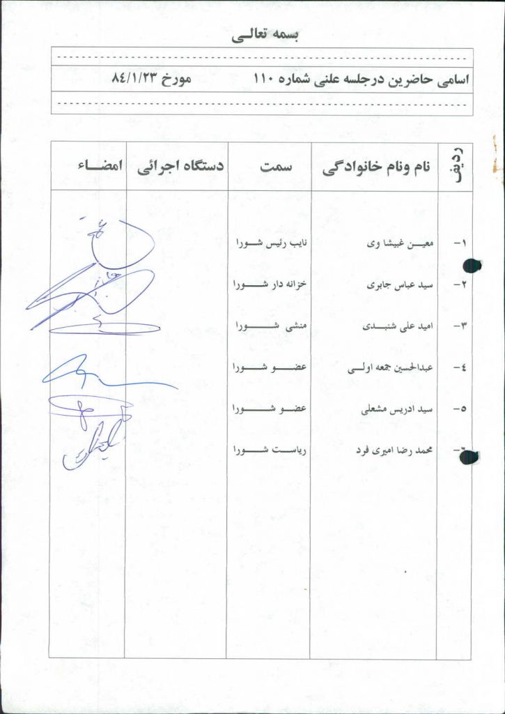 مصوبه شماره ۵ جلسه شماره ۱۱۰ شورای اسلامی شهر امیدیه