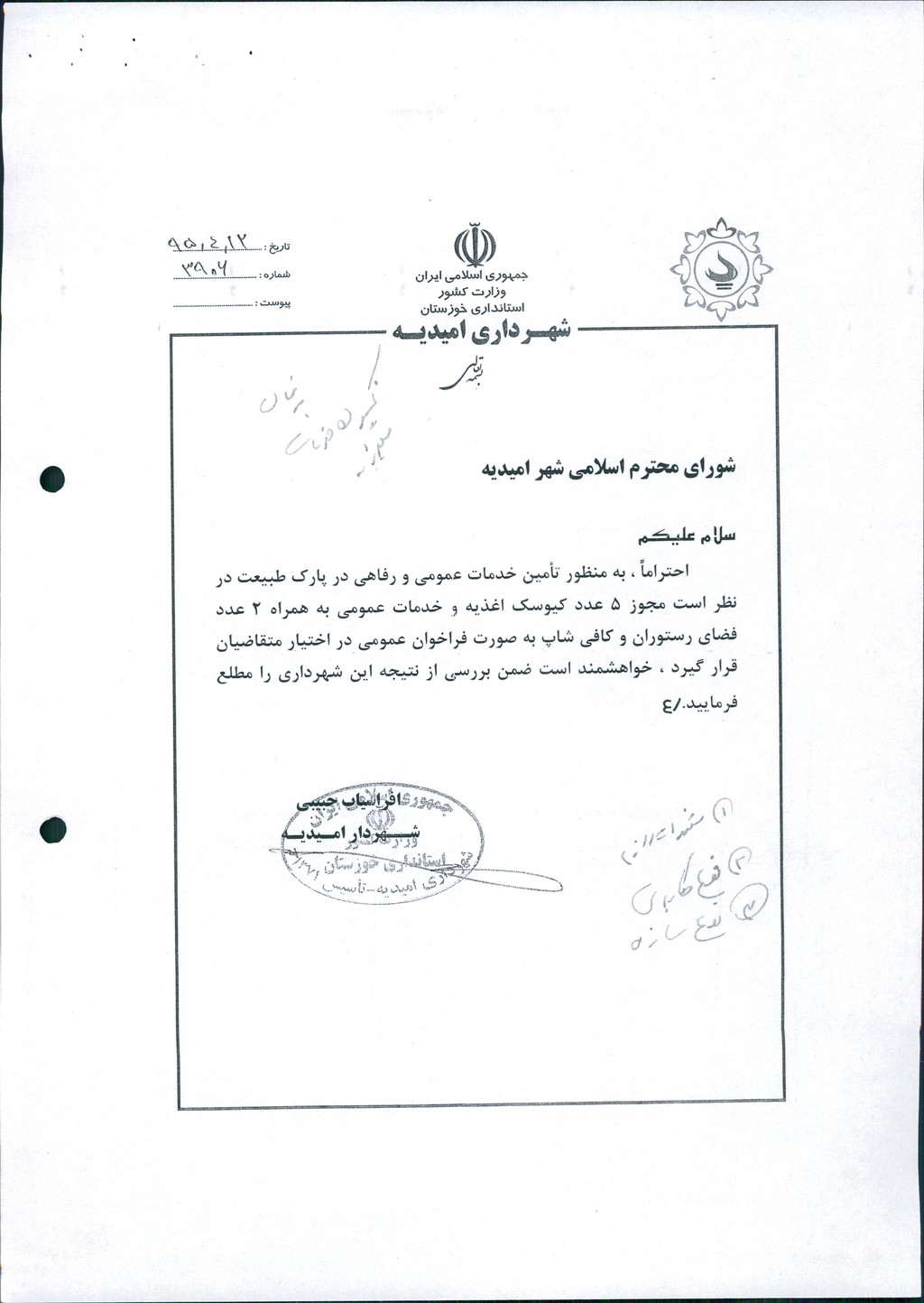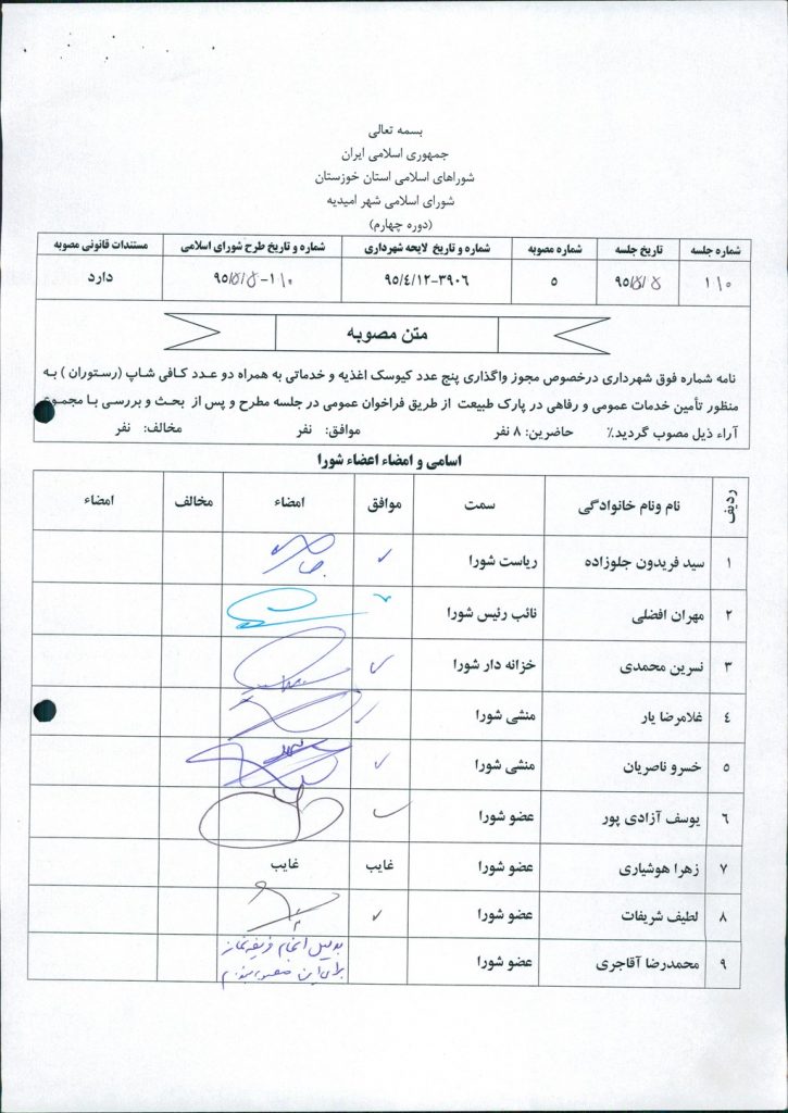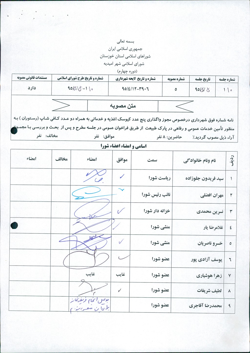 مصوبه شماره ۵ جلسه شماره ۱۱۰ شورای اسلامی شهر امیدیه