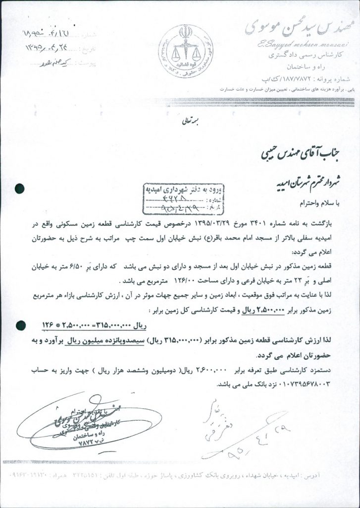 مصوبه شماره ۵ جلسه شماره ۱۲۱شورای اسلامی شهر امیدیه