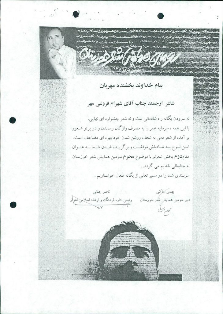 موضوع : مساعدت مالی به آقای شهرام فروغی و خانم اعظم چهارده چریک .