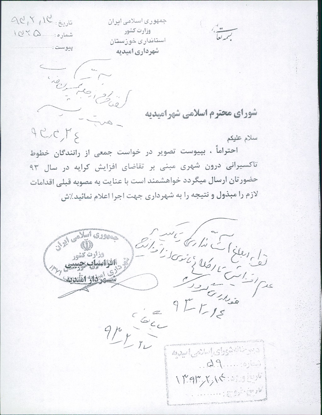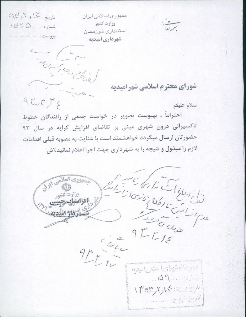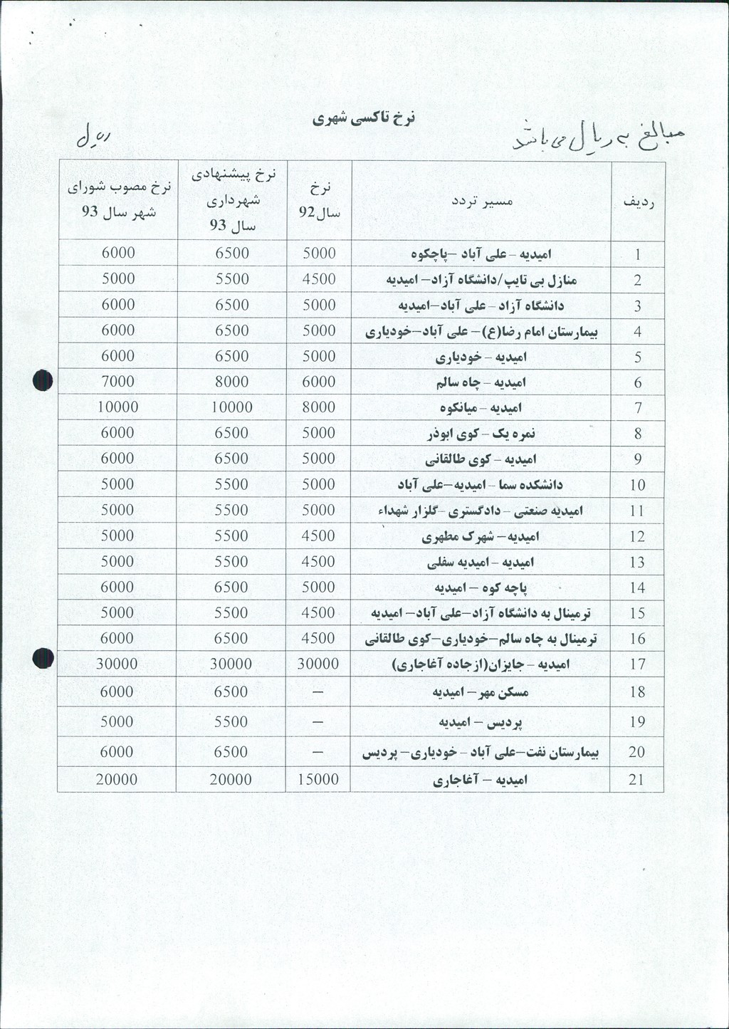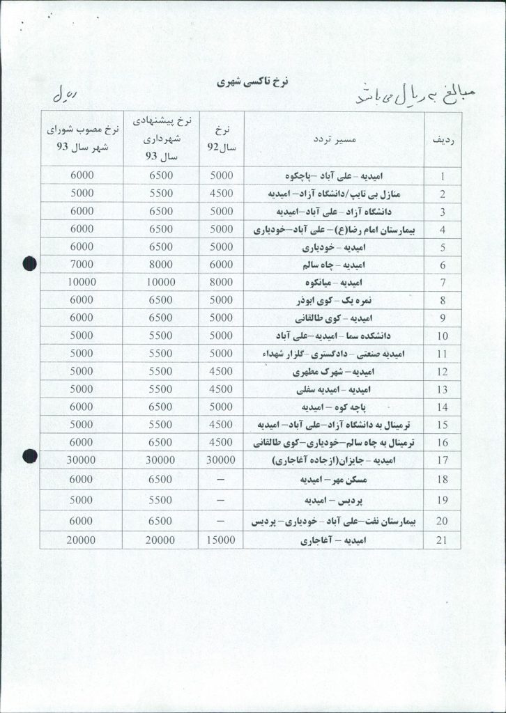 نامه شماره فوق شهرداری مبنی بر افزایش نرخ کرایه تاکسی های شهری درسال ۱۳۹۳ (بپیوست نرخنامه مناطق مختلف شهرستان)، در جلسه مطرح و پس از بحث و بررسی با مجموع آراء ذیل مصوب گردید%