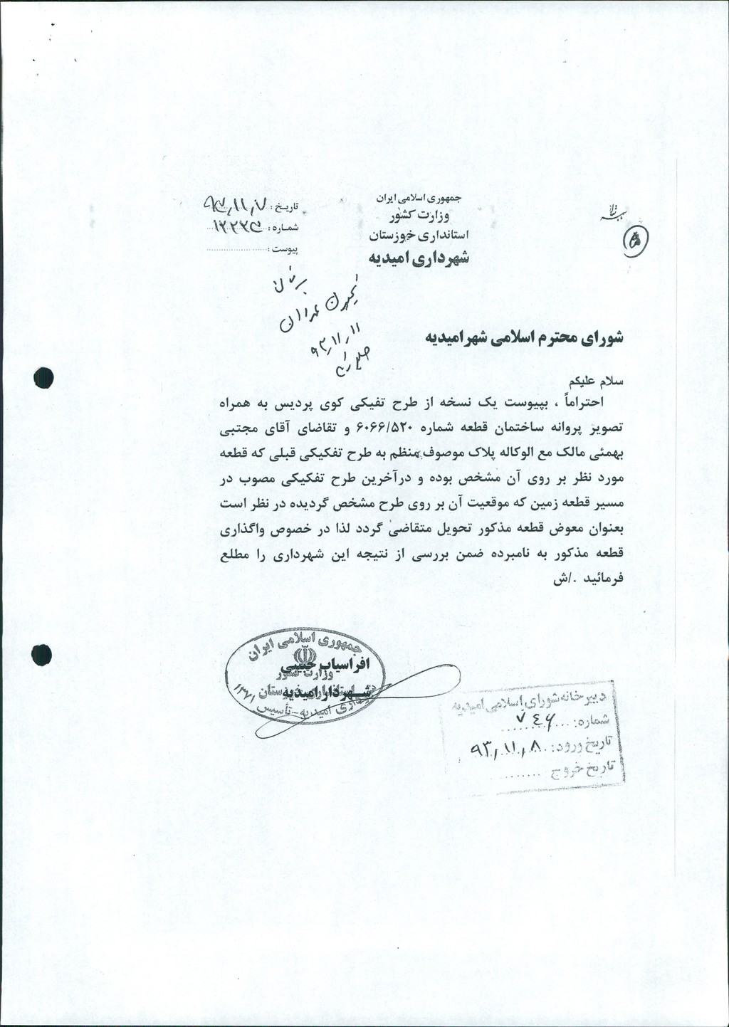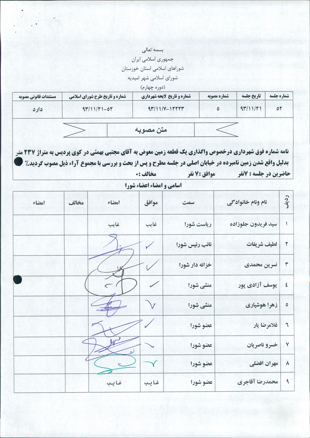 مصوبه شماره ۵ جلسه شماره ۵۲ شورای اسلامی شهر امیدیه