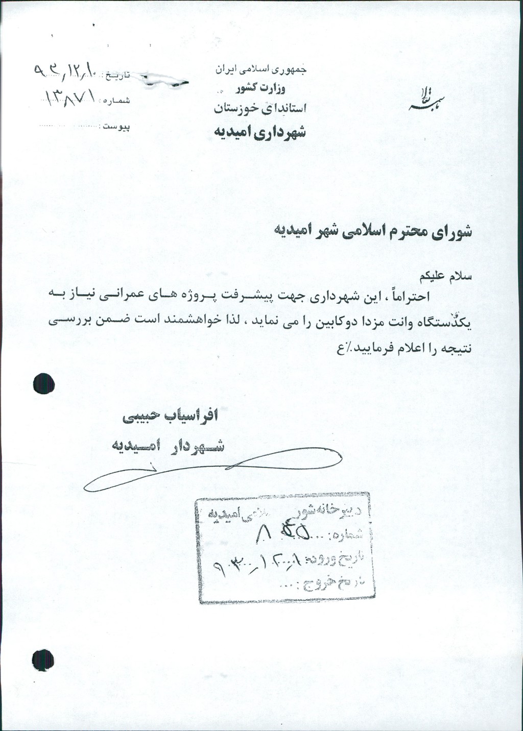 بسم الله الرحمن الرحیم مصوبه شماره ۵ جلسه شماره ۵۶ شورای اسلامی شهر امیدیه