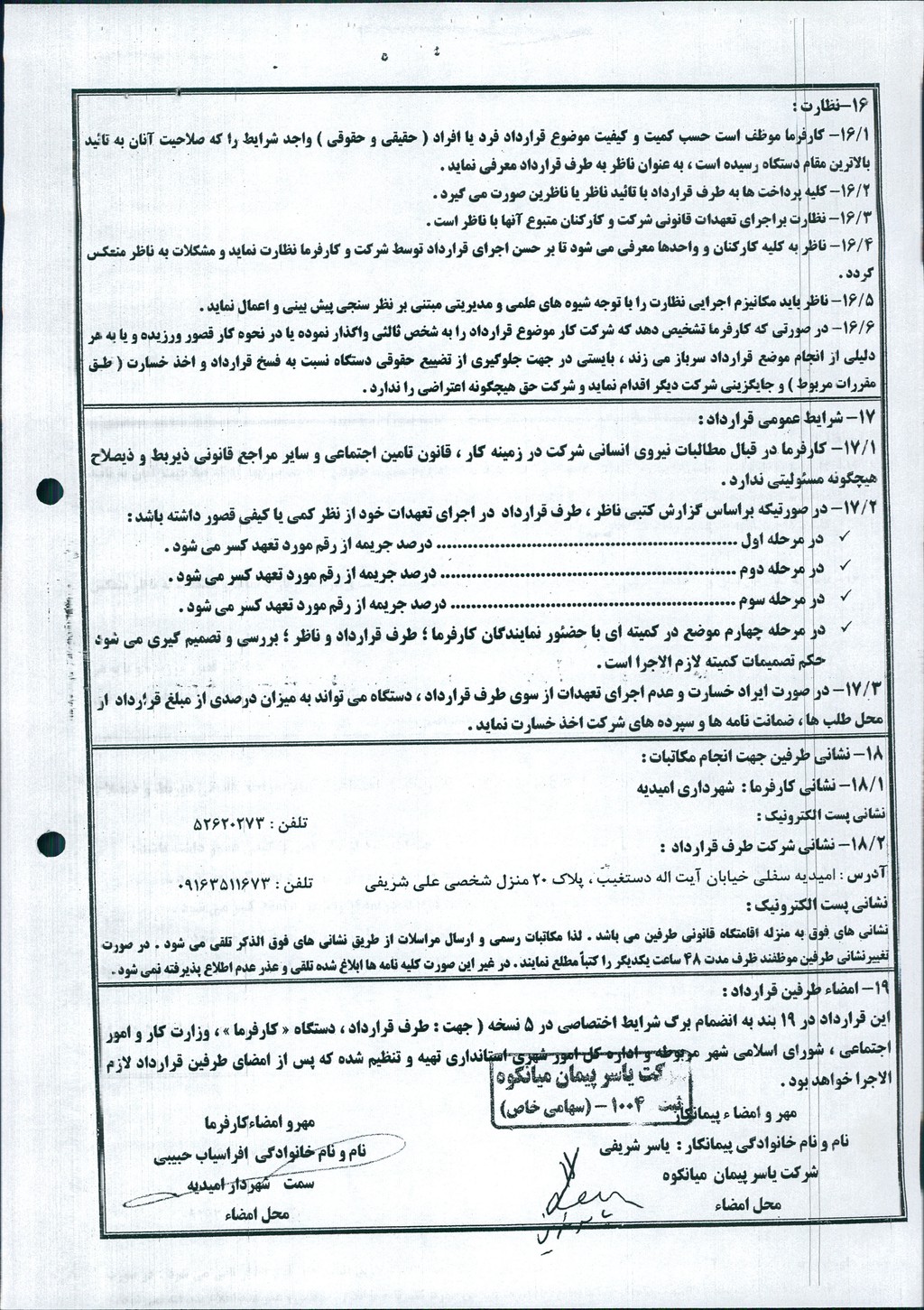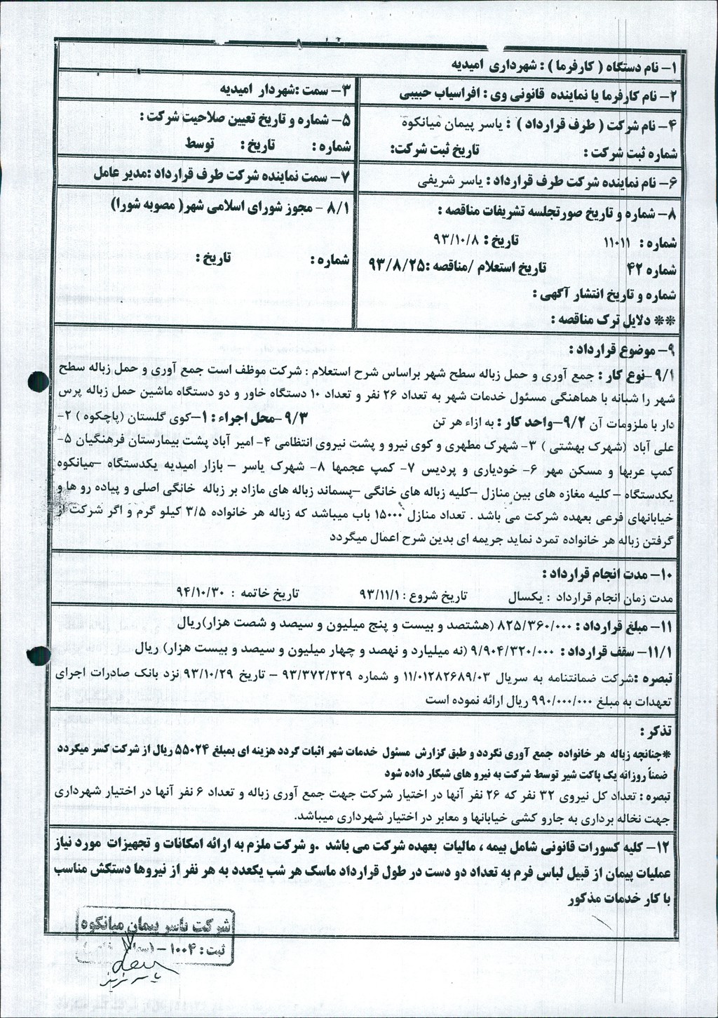 مصوبه شماره ۵ جلسه شماره ۹۸ مورخ ۹۴/۱۲/۱۱ شورای اسلامی شهر امیدیه