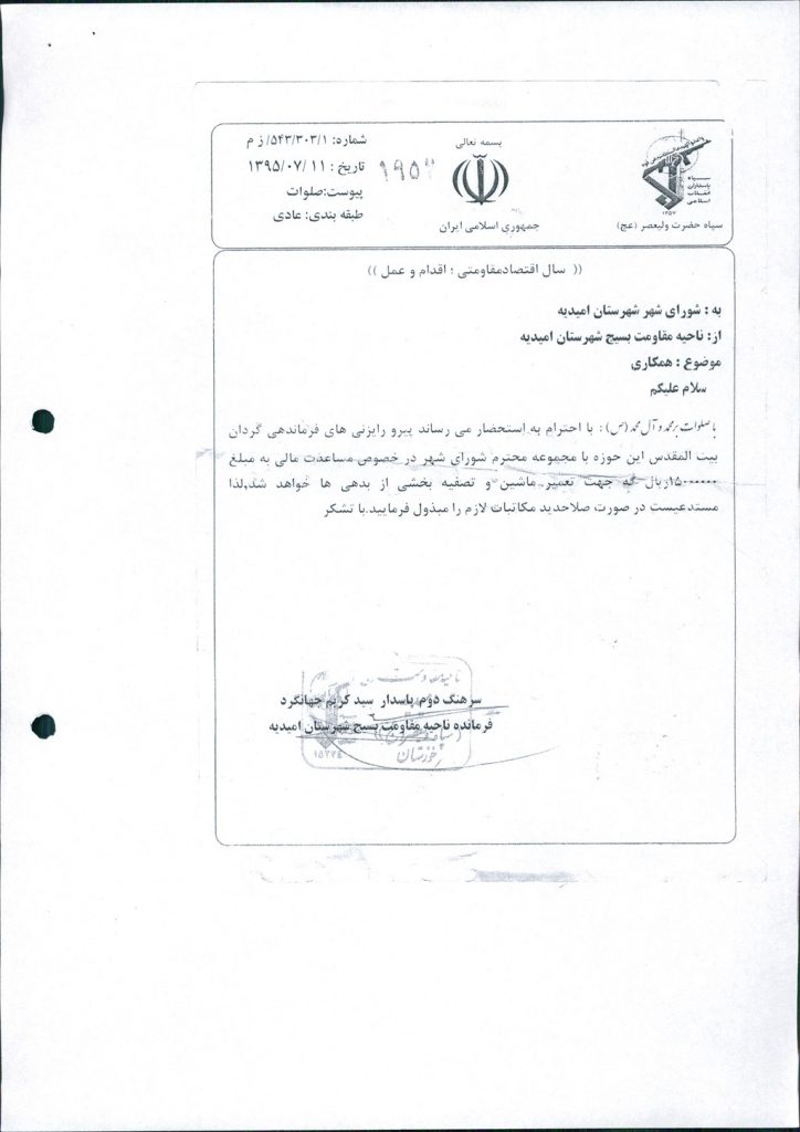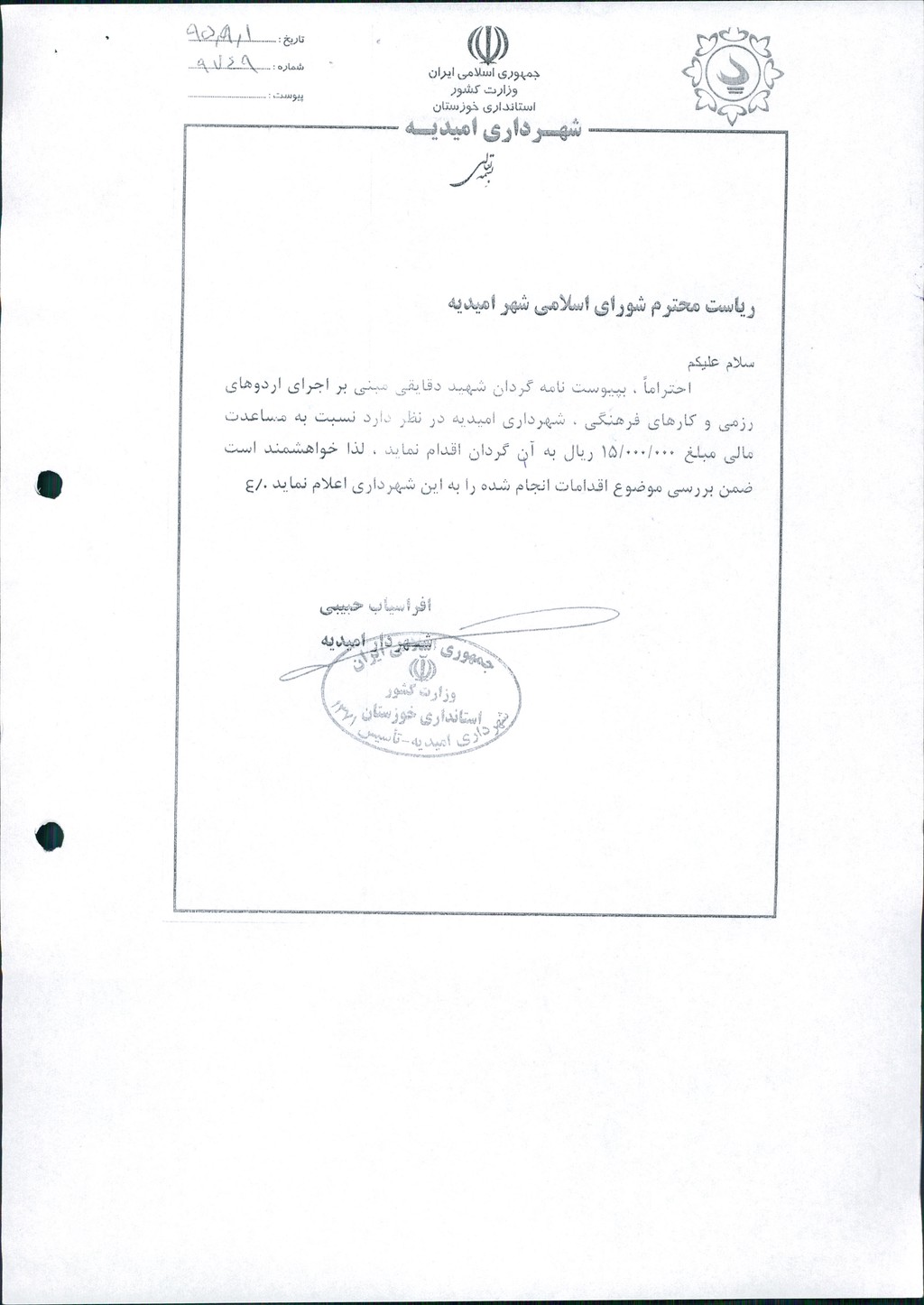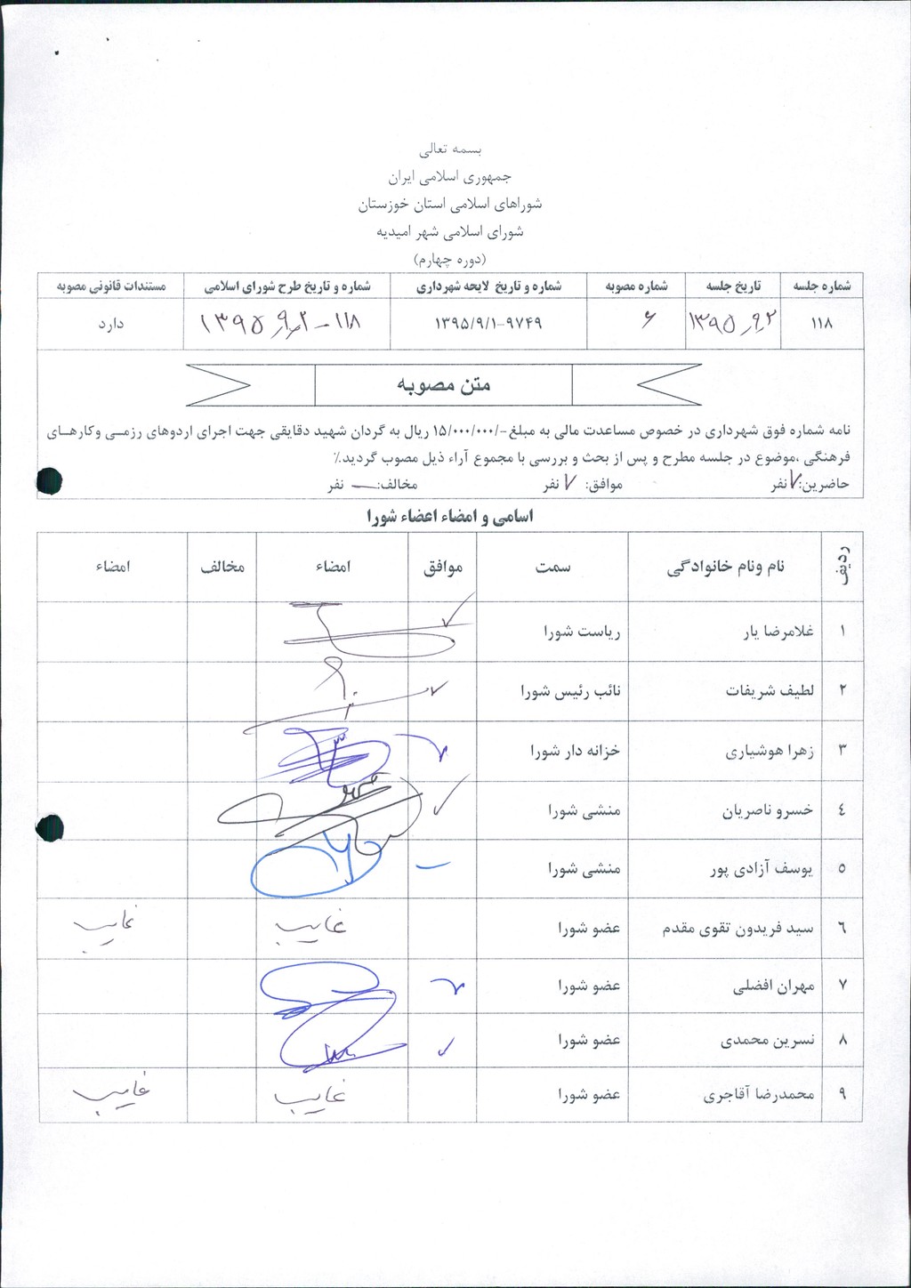مصوبه شماره ۶ جلسه شماره ۱۱۸ شورای اسلامی شهر امیدیه