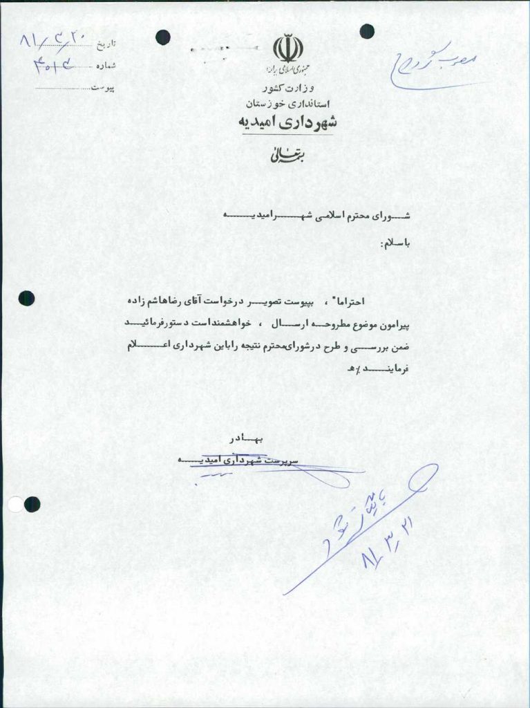 مصوبه شماره ۶ جلسه شماره ۲۶۹ شورای اسلامی شهر امیدیه
