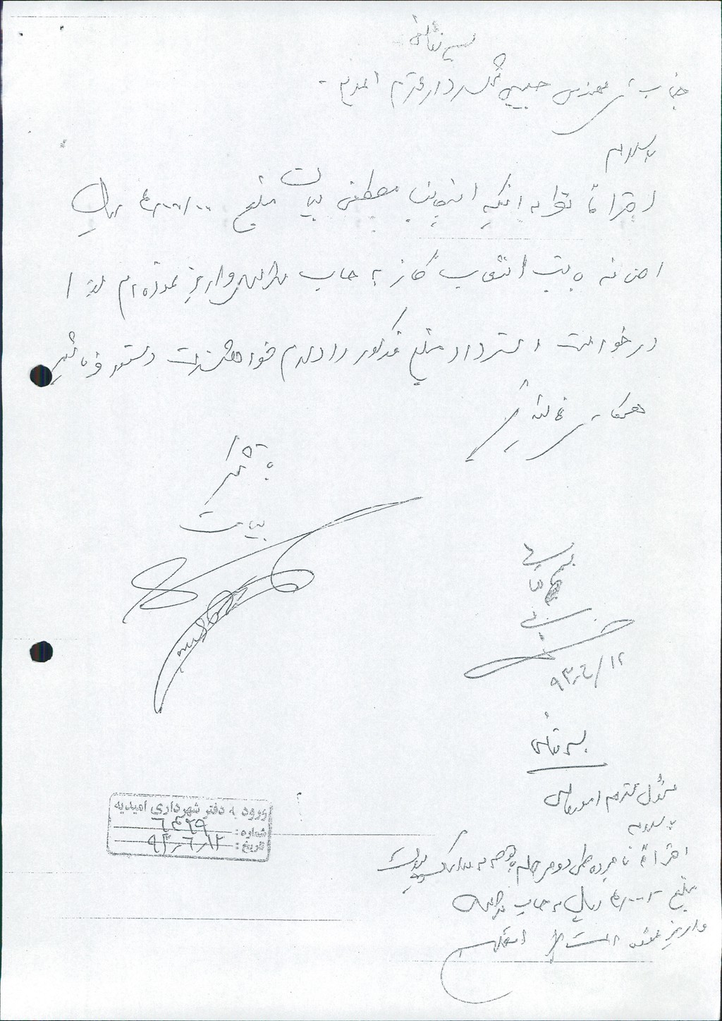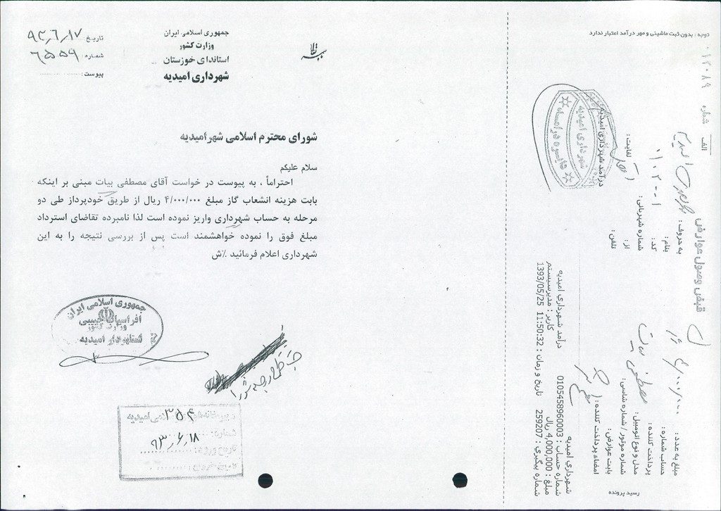 نامه شماره فوق شهرداری درخصوص درخواست استرداد مبلغ ۴۰۰۰۰۰۰ ریال وجه واریزی آقای مصطفی بیات که از طریق خودپرداز طی دو مرحله به حساب شهرداری جهت هزینه انشعاب گاز واریز نموده در جلسه مطرح و پس از بحث و بررسی با مجموع آراء ذیل مصوب گردید%