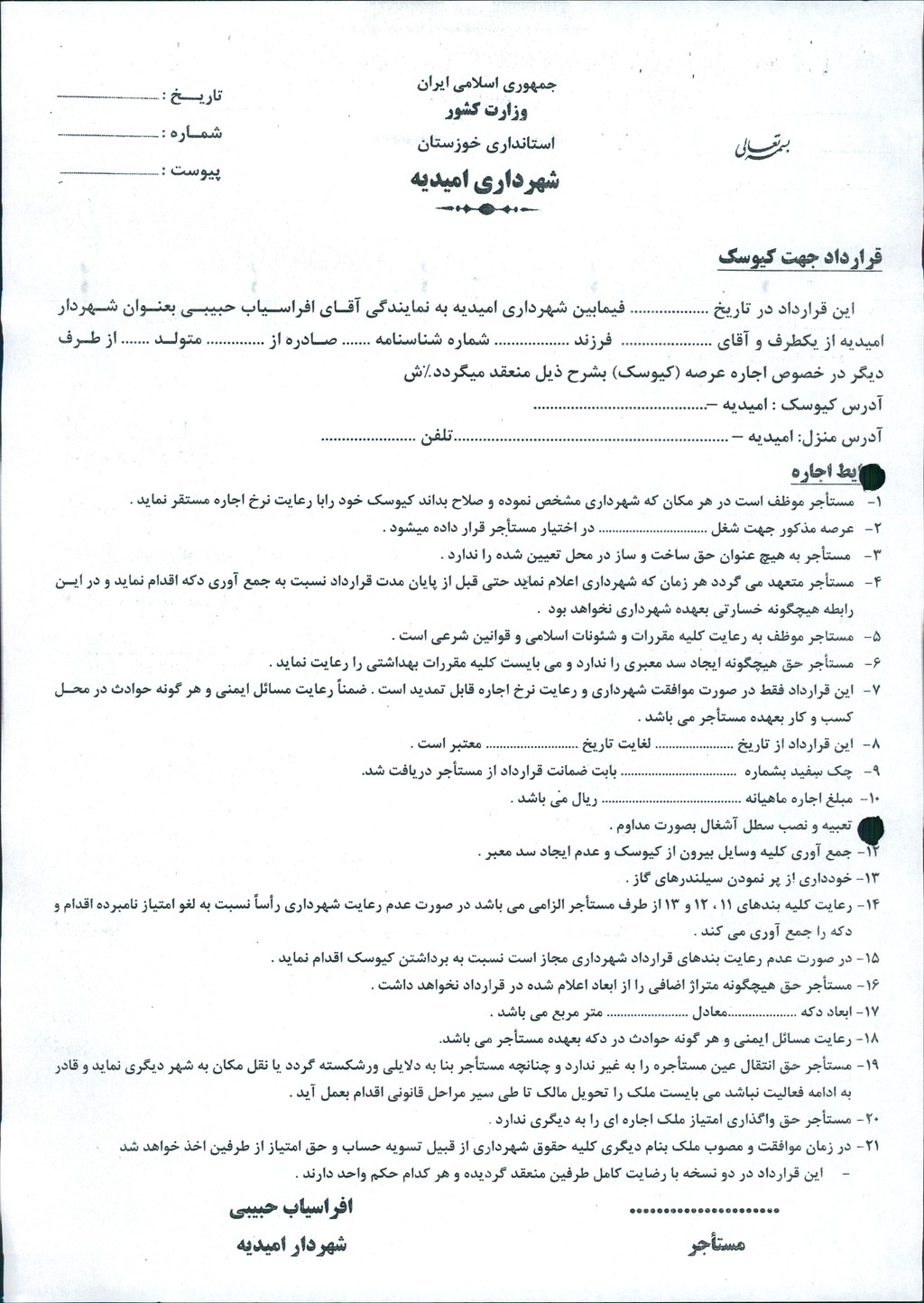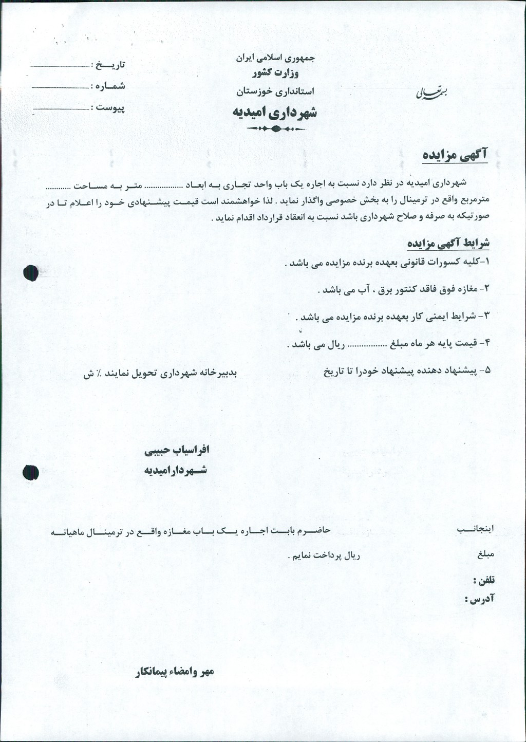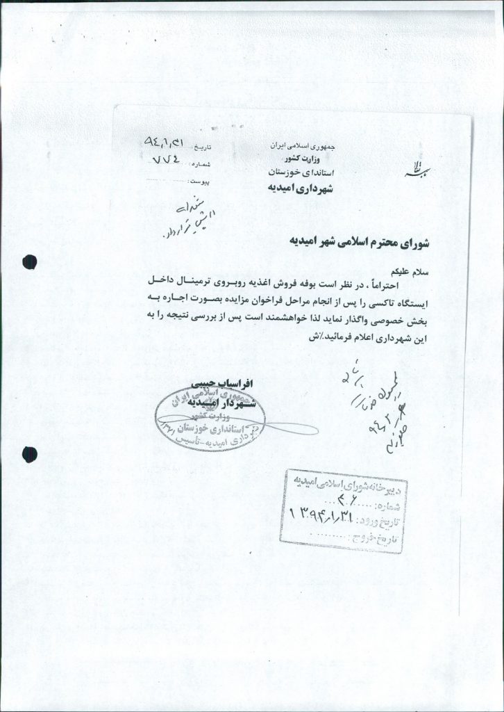 مصوبه شماره ۶ جلسه شماره ۷۰ شورای اسلامی شهر امیدیه