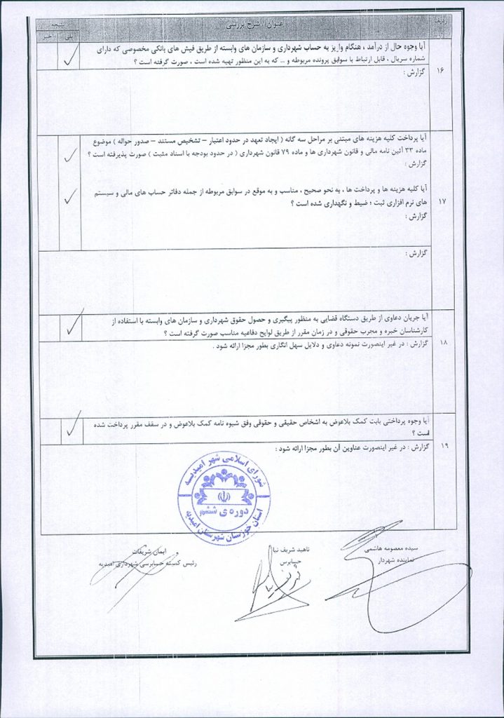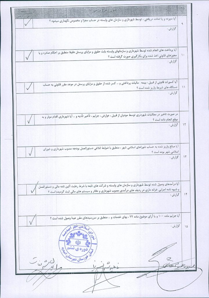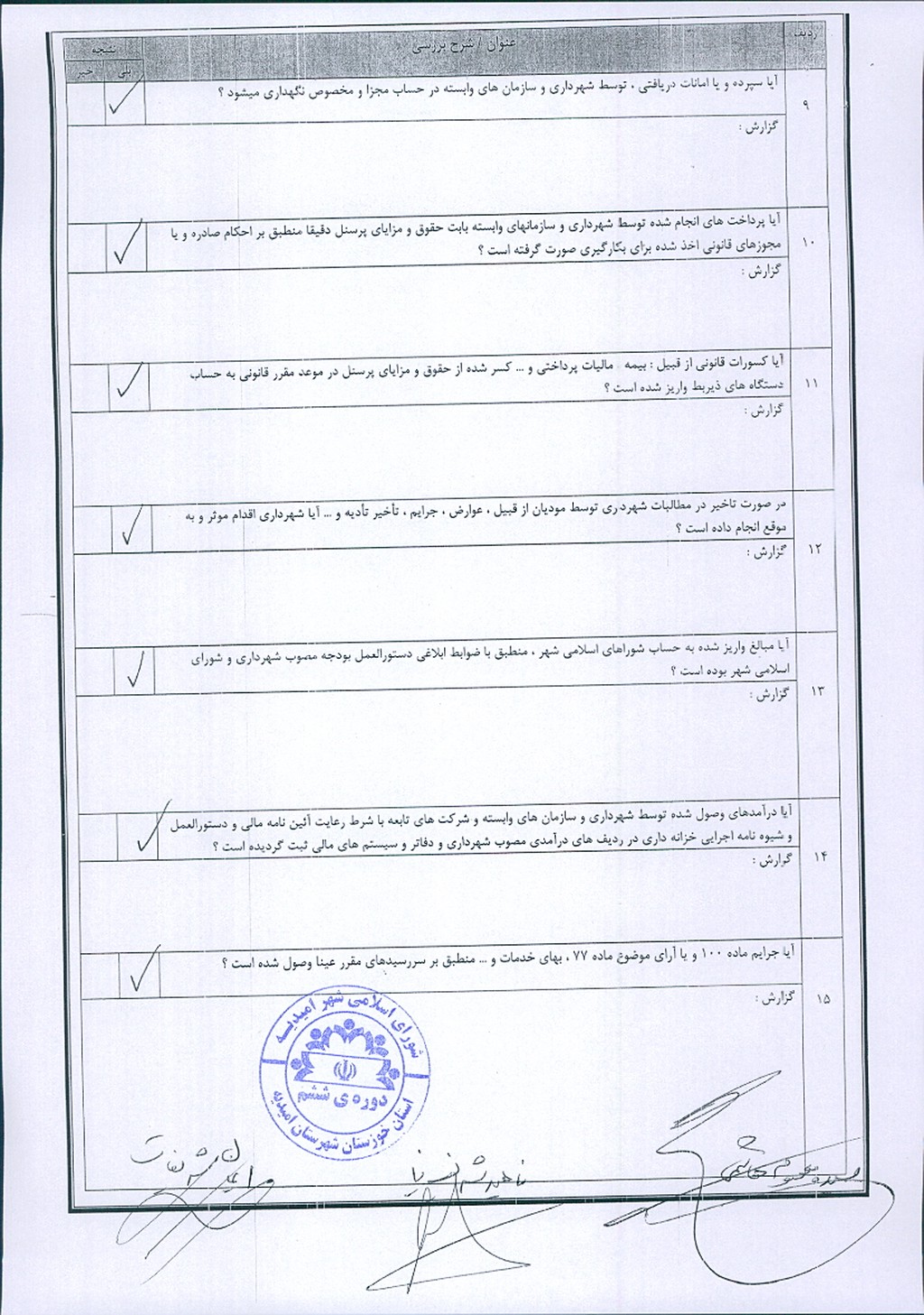 مصوبه شماره ۶ جلسه شماره ۹۶ شورای اسلامی شهر امیدیه