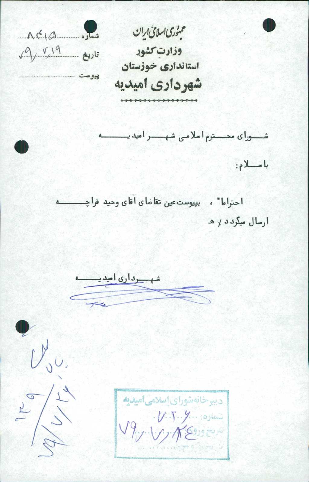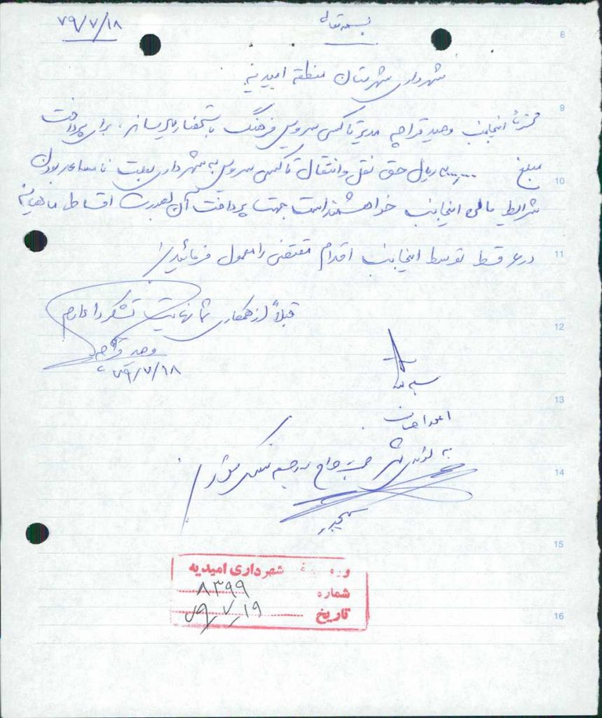 مصوبه شماره ۷ جلسه شماره ۱۳۹ شورای اسلامی شهر امیدیه
