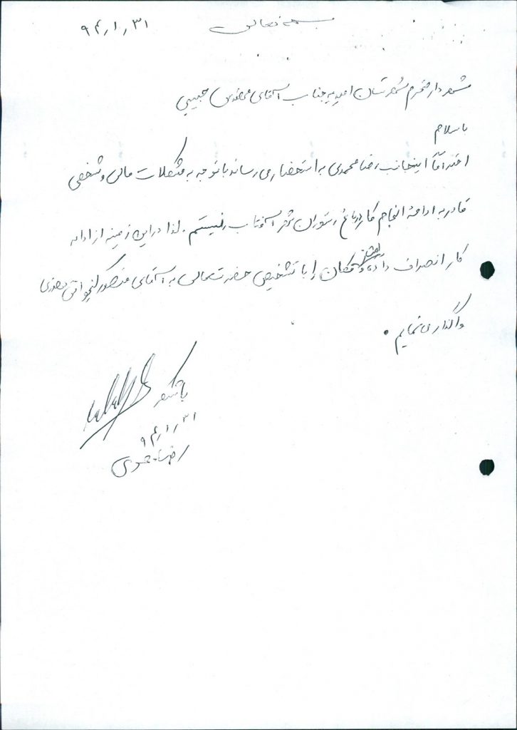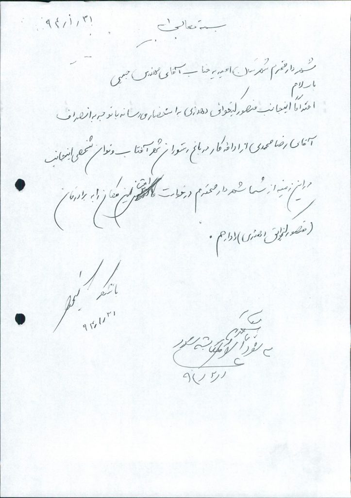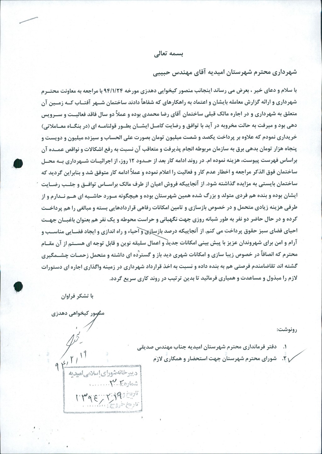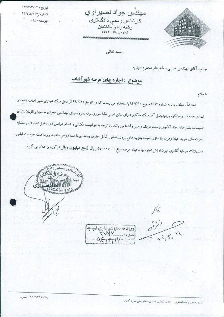 مصوبه شماره ۷ جلسه شماره ۶۲ مورخ ۹۴/۲/۳۰ شورای اسلامی شهر امیدیه
