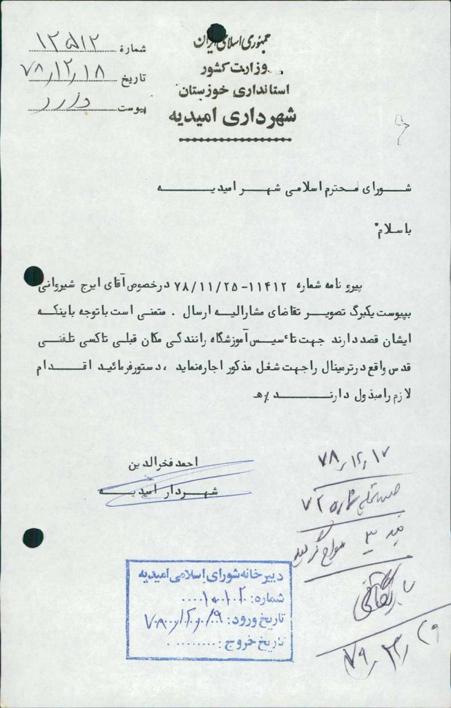 مصوبه شماره ۹ جلسه شماره ۹۳ شورای اسلامی شهر امیدیه