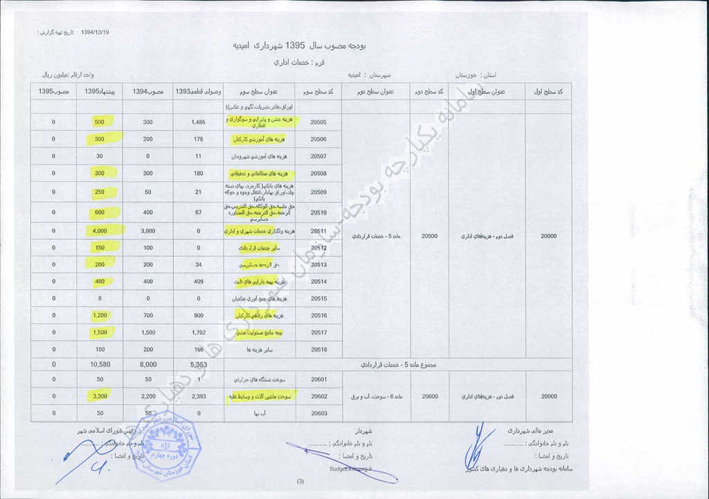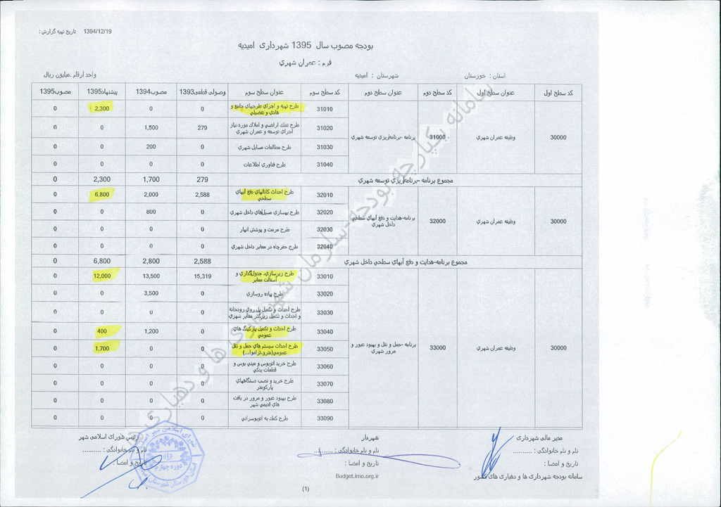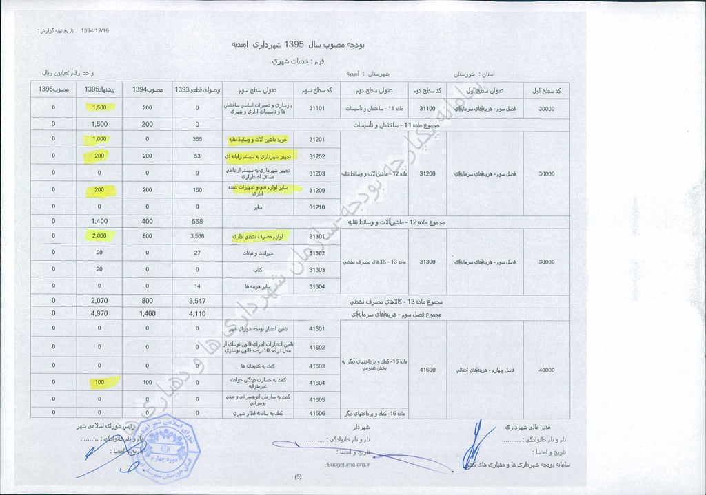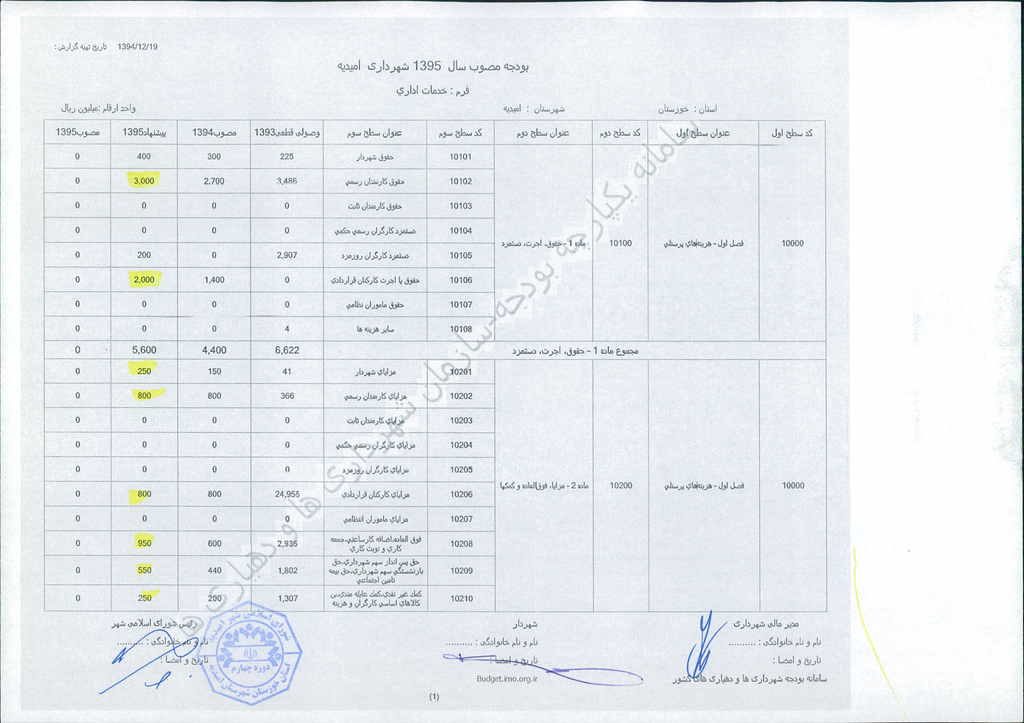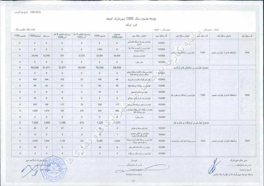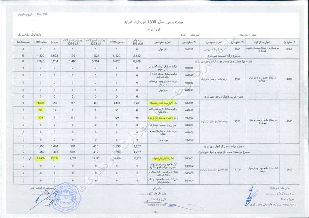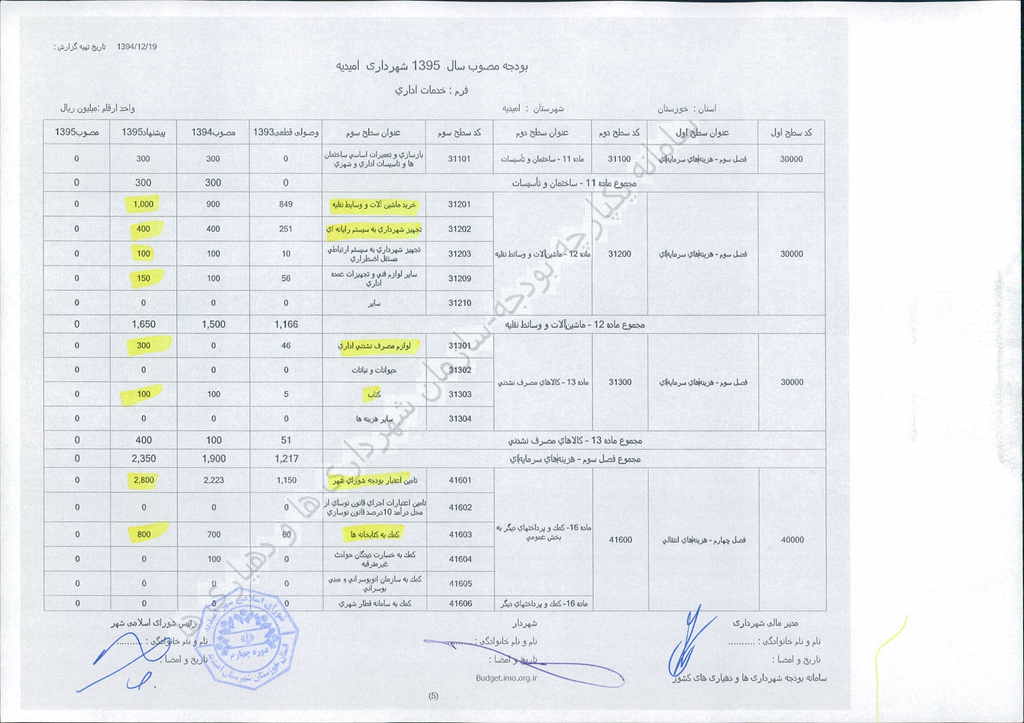 نامه شماره فوق شهرداری مبنی بر بودجه پیشنهادی سال ۱۳۹۵ شهرداری امیدیه به مبلغ -/۰۰۰/۰۰۰/۰۰۰/ ۲۱۶ ریال (دویست و شانزده میلیارد ریال) درجلسه مطرح و پس از بحث و بررسی با مجموع آراء ذیل مصوب گردید%