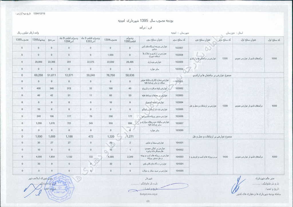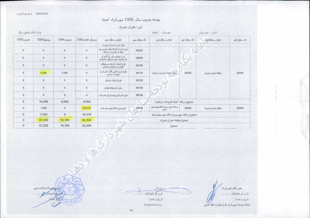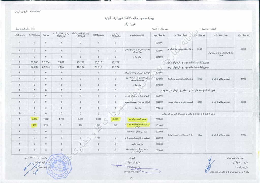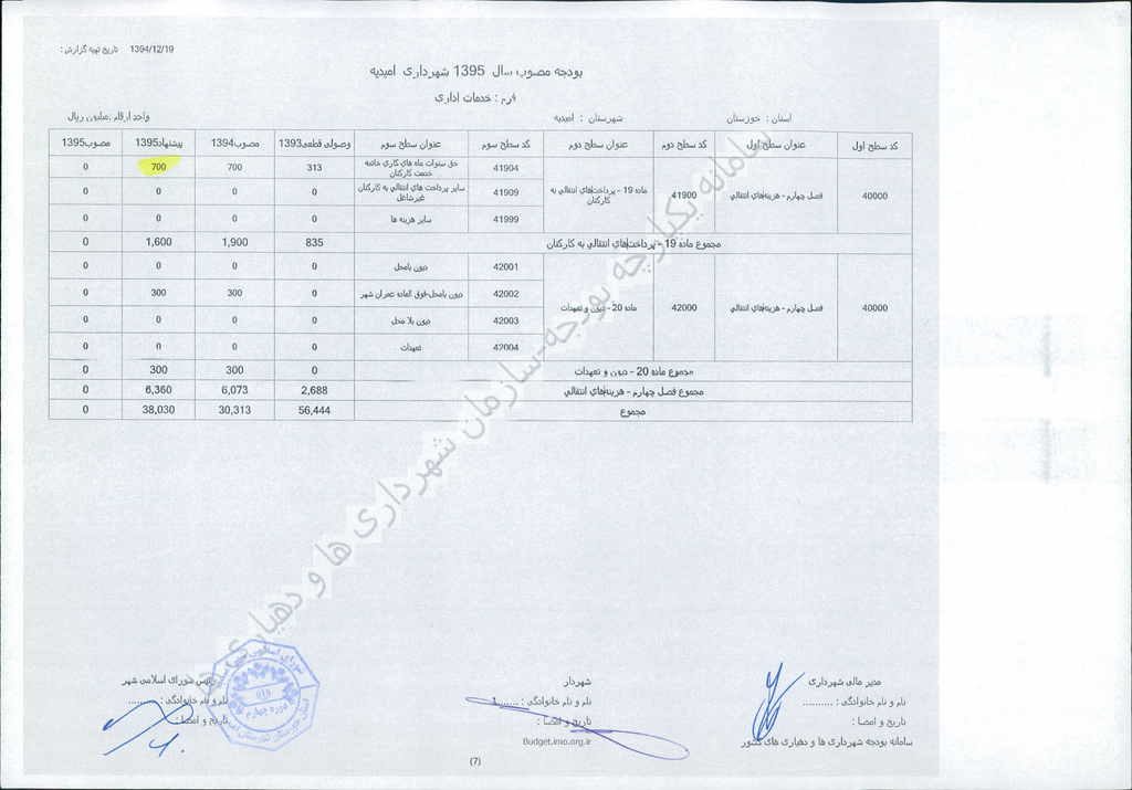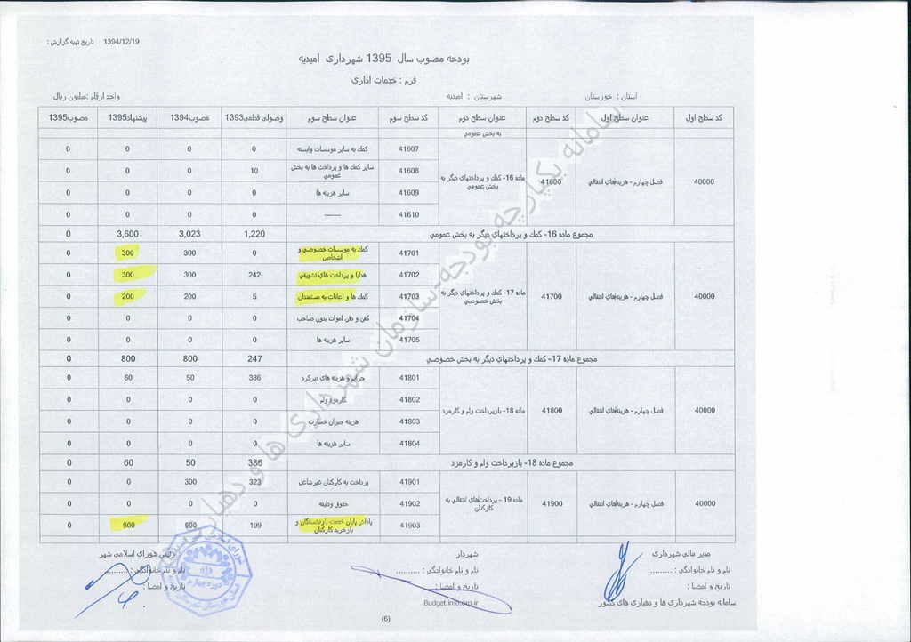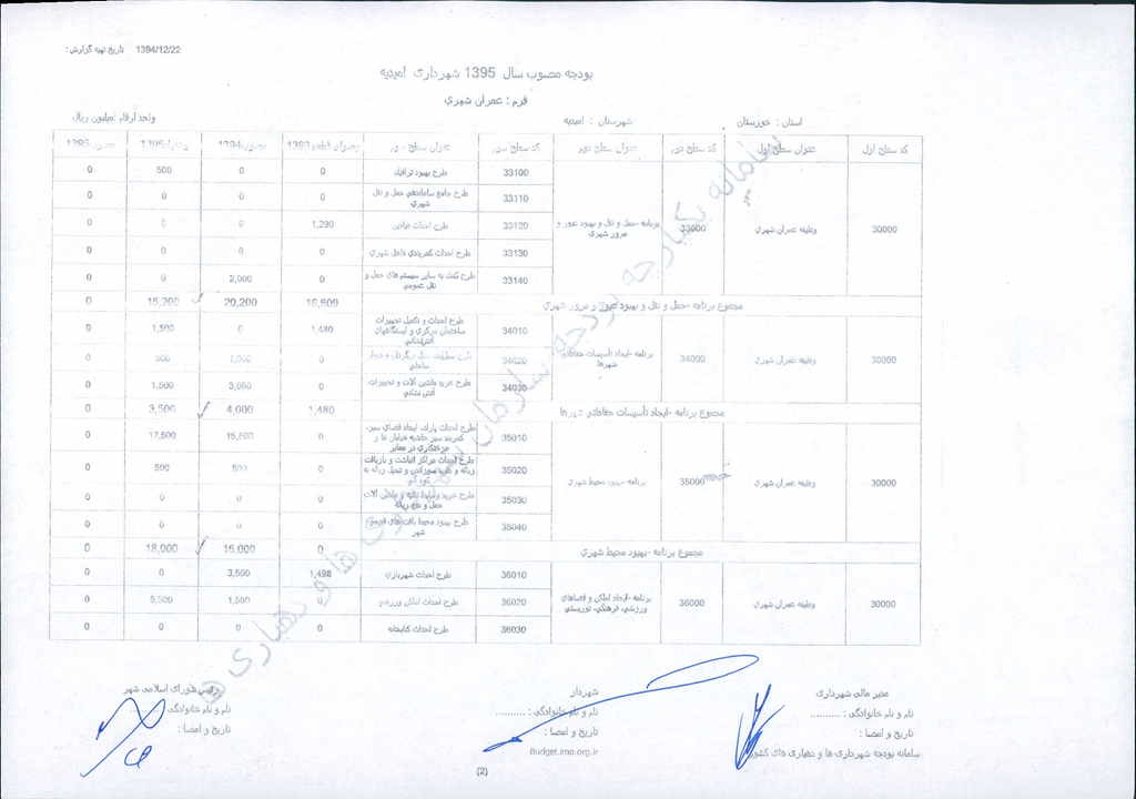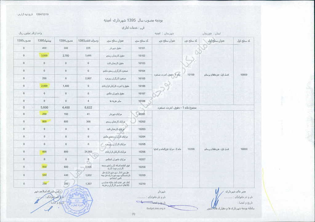 نامه شماره فوق شهرداری مبنی بر بودجه پیشنهادی سال ۱۳۹۵ شهرداری امیدیه به مبلغ -/۰۰۰/۰۰۰/۰۰۰/ ۲۱۶ ریال (دویست و شانزده میلیارد ریال) درجلسه مطرح و پس از بحث و بررسی با مجموع آراء ذیل مصوب گردید%