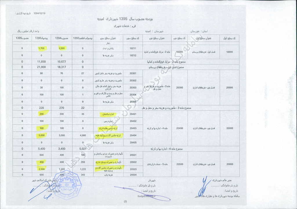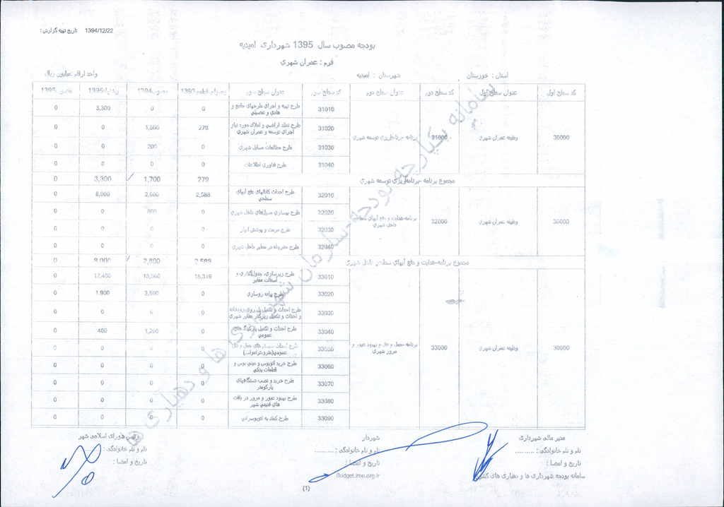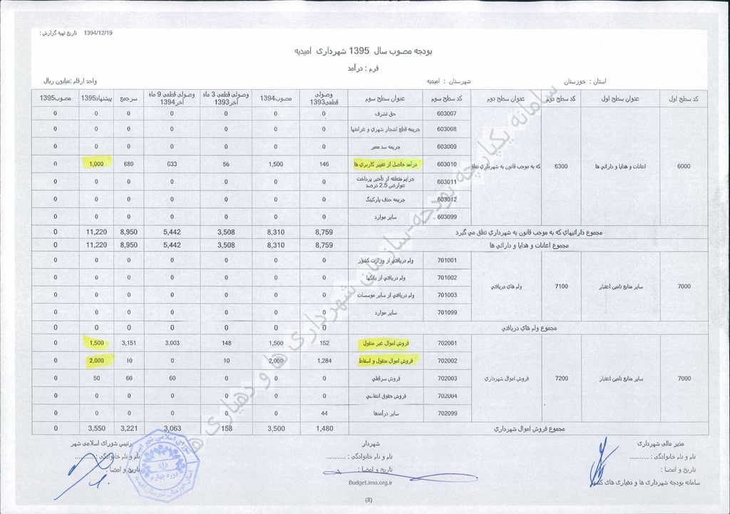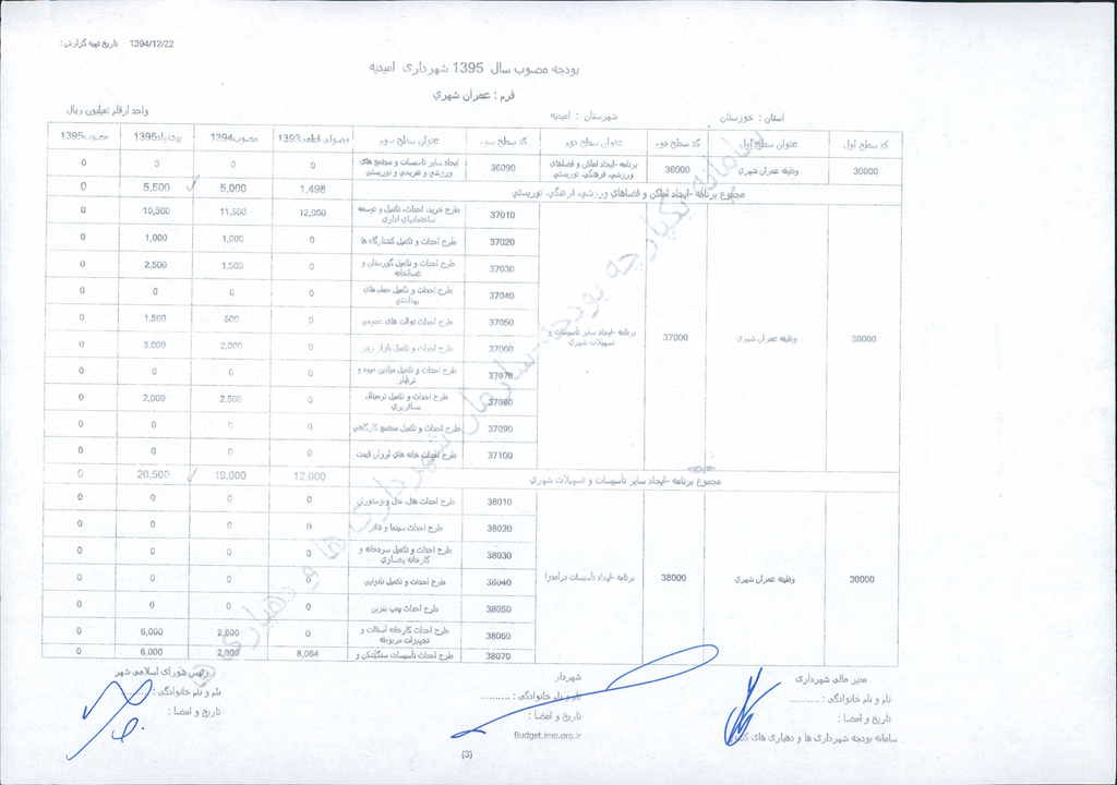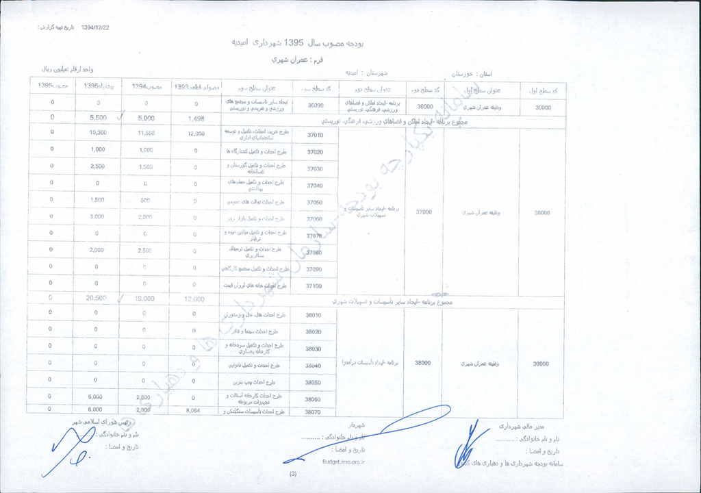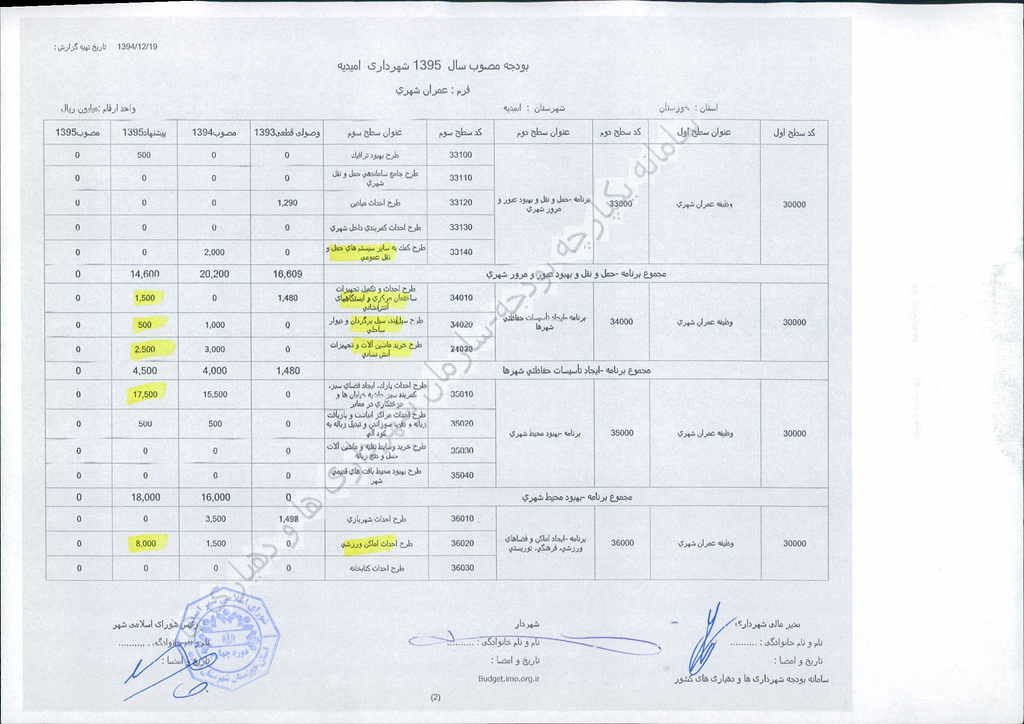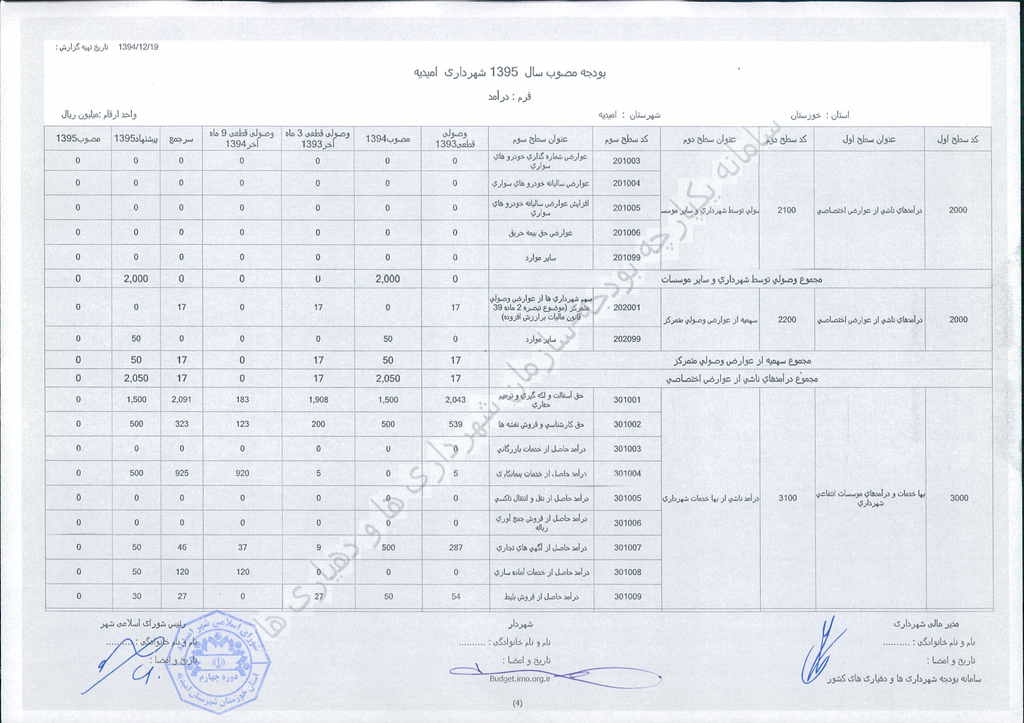 نامه شماره فوق شهرداری مبنی بر بودجه پیشنهادی سال ۱۳۹۵ شهرداری امیدیه به مبلغ -/۰۰۰/۰۰۰/۰۰۰/ ۲۱۶ ریال (دویست و شانزده میلیارد ریال) درجلسه مطرح و پس از بحث و بررسی با مجموع آراء ذیل مصوب گردید%