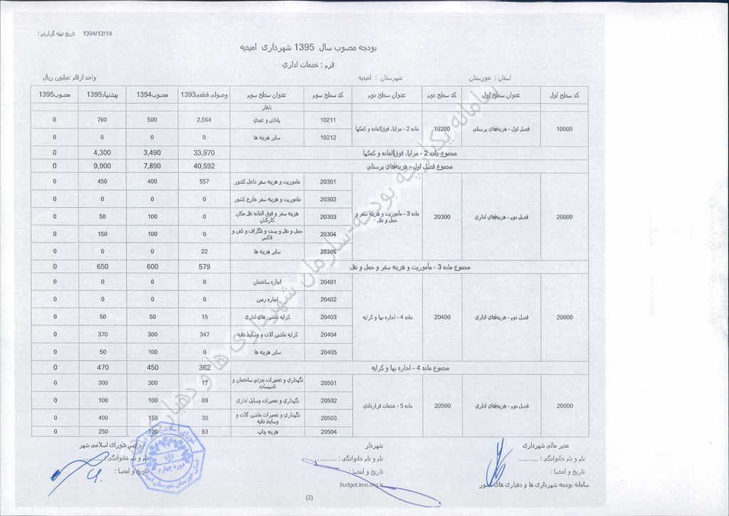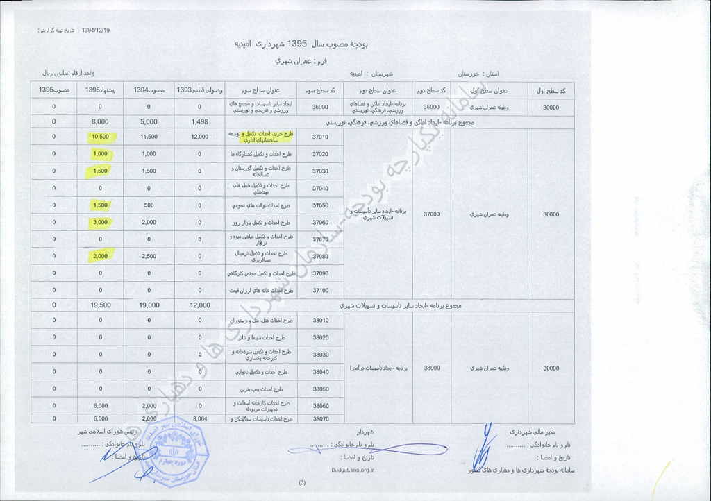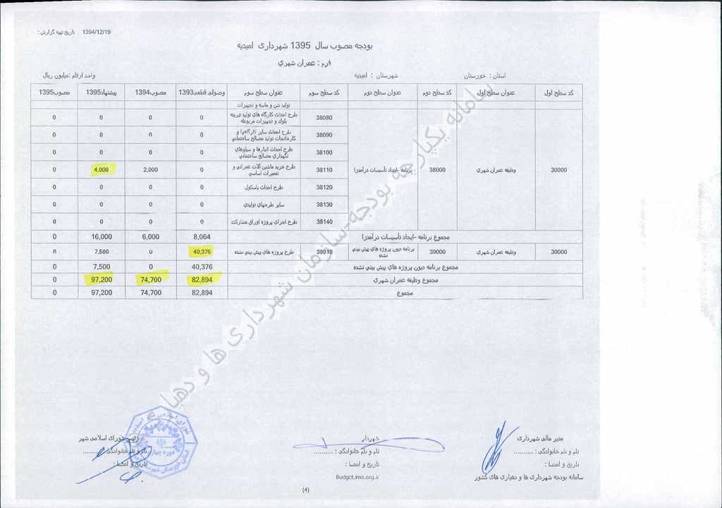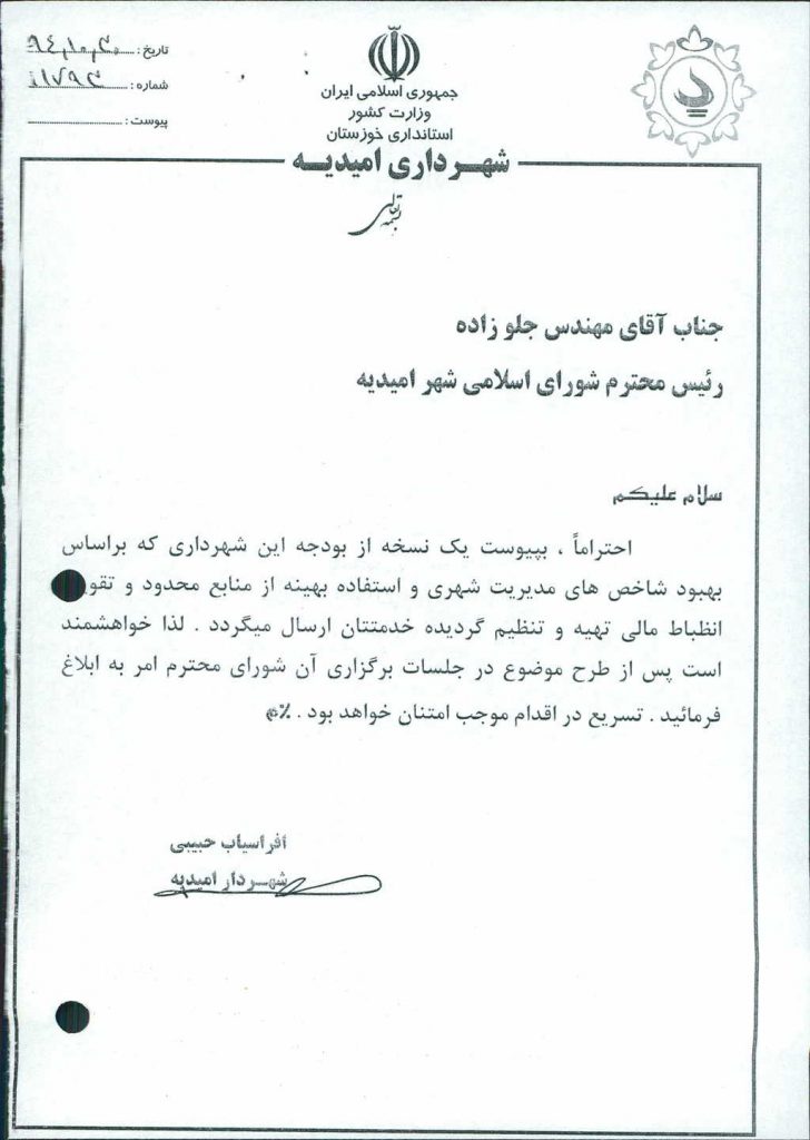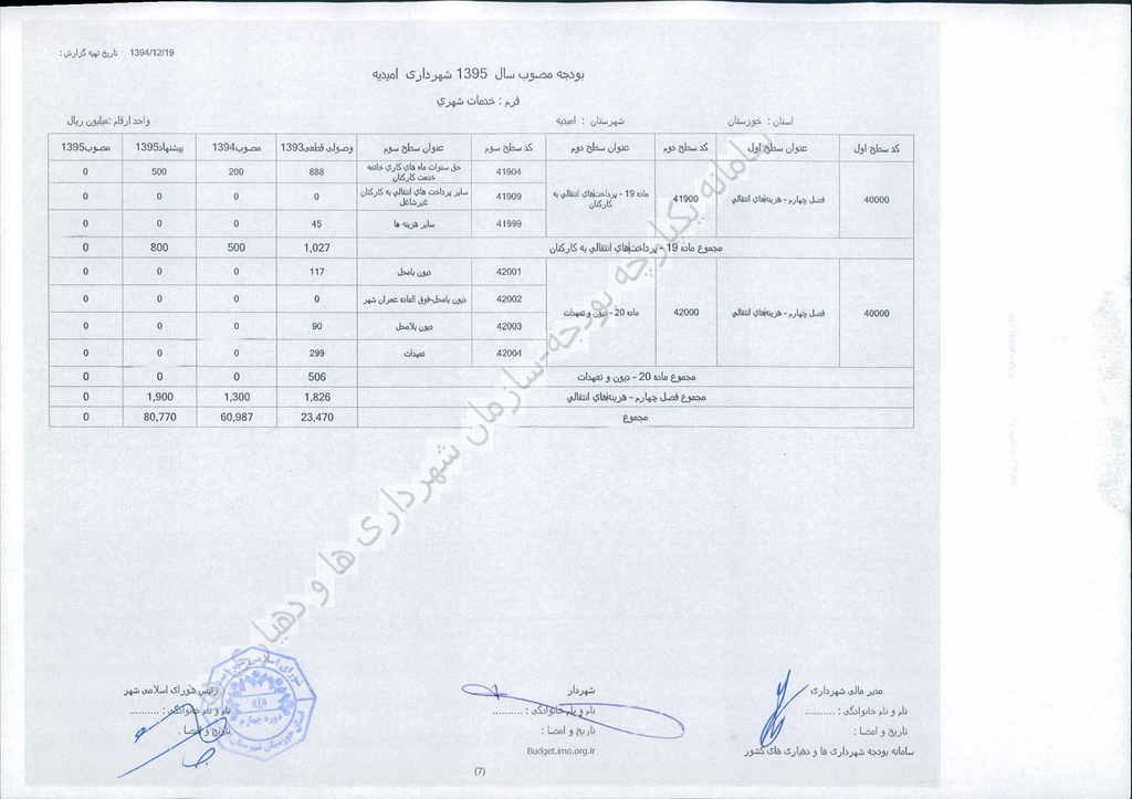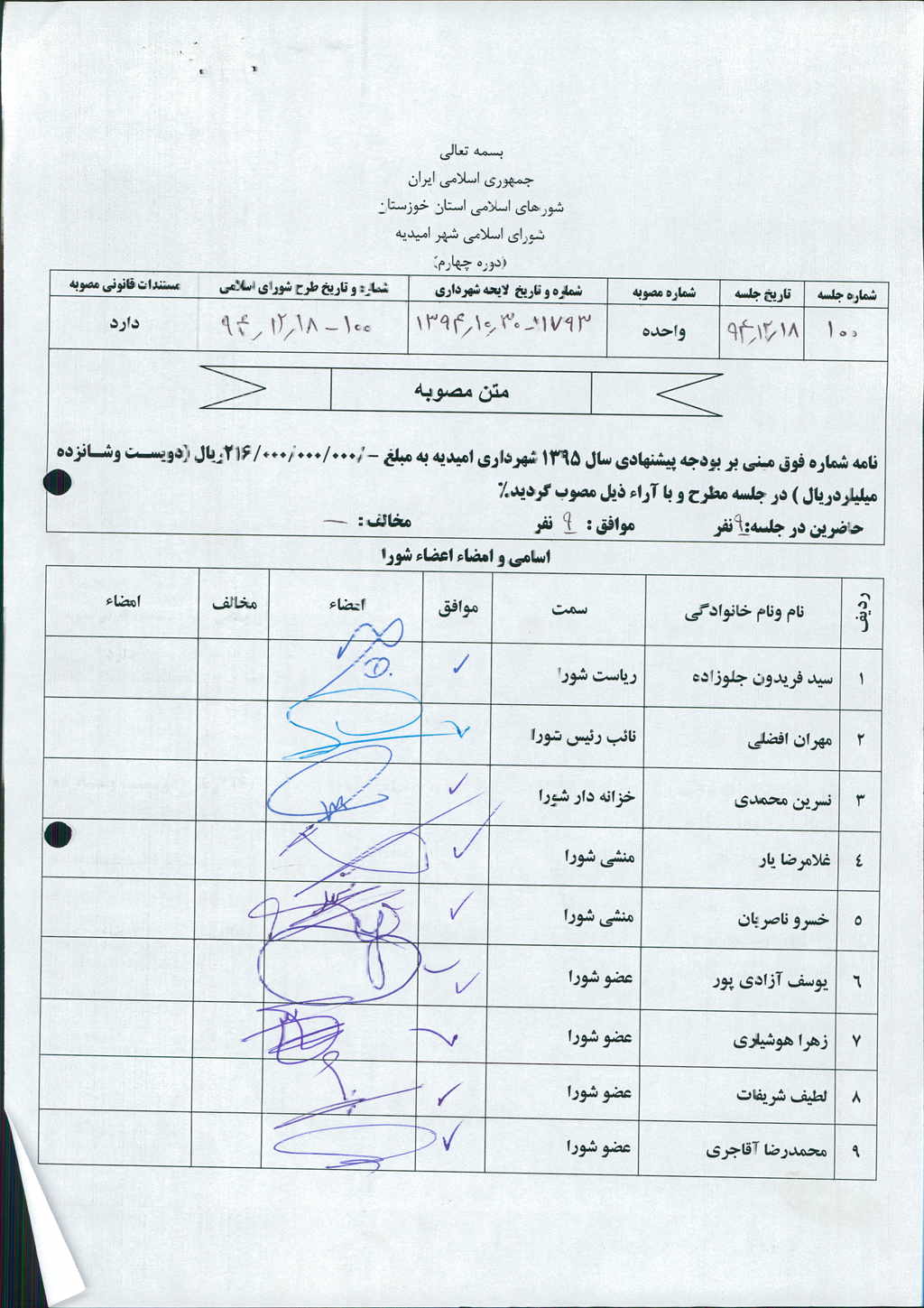 مصوبه واحده جلسه شماره ۱۰۰ شورای اسلامی شهر امیدیه