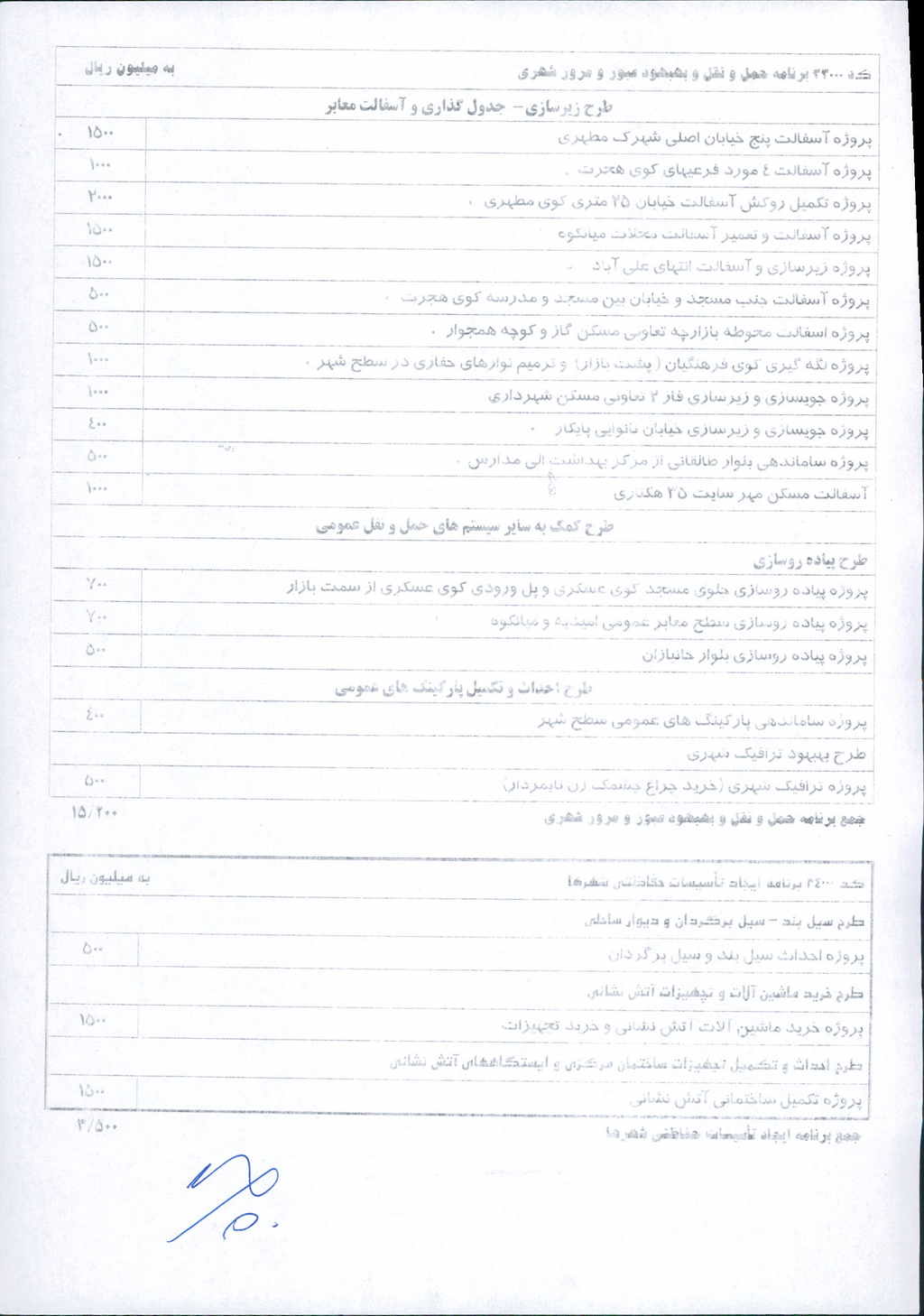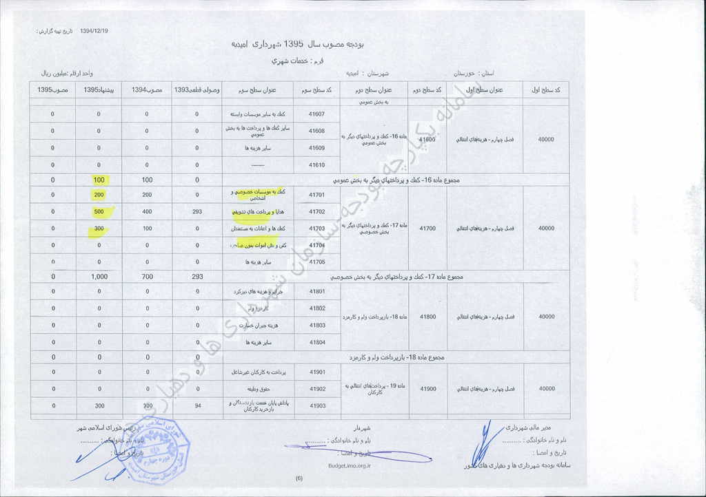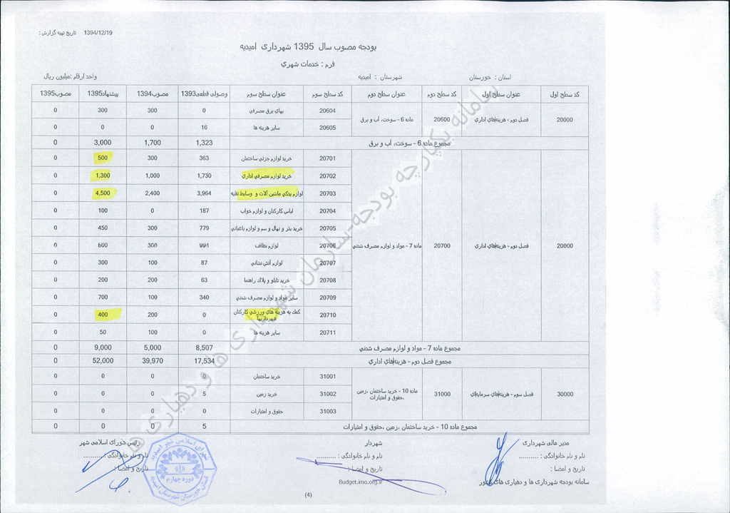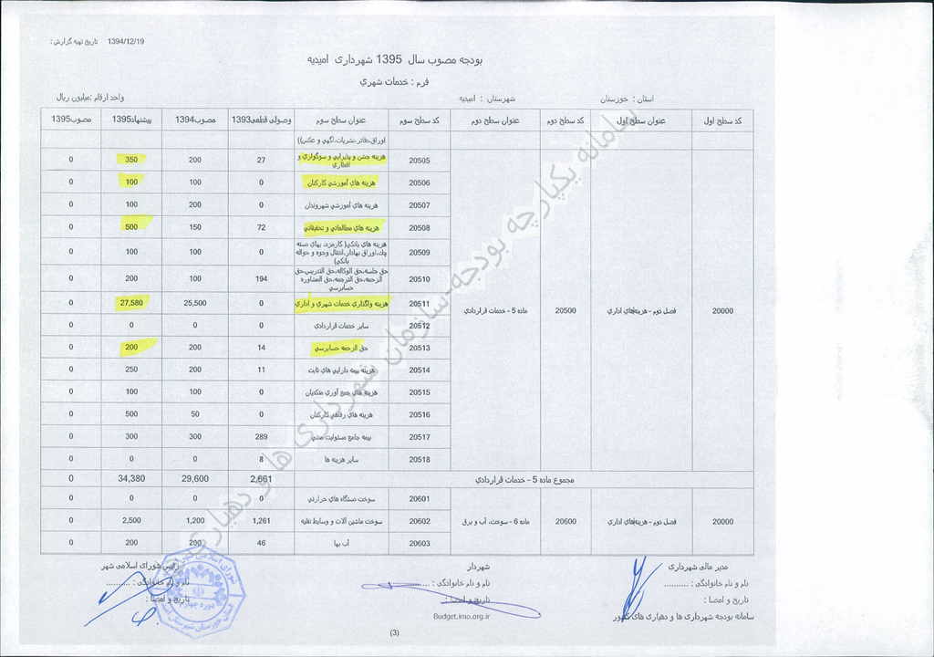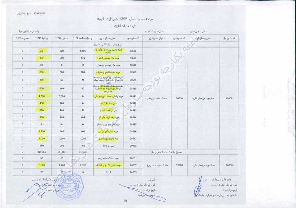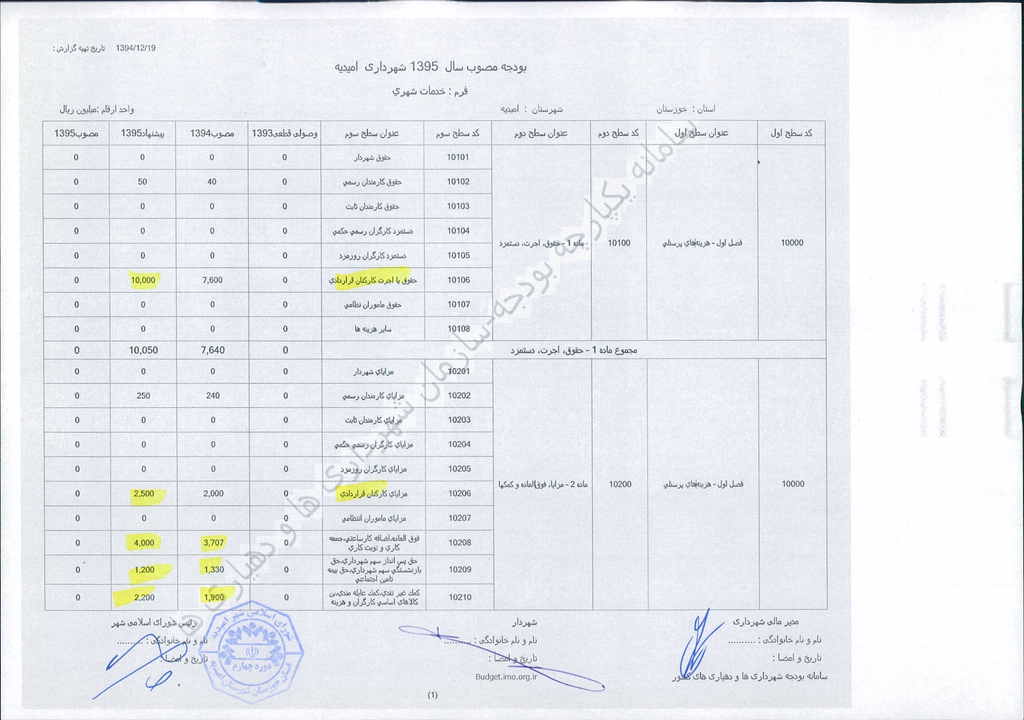 مصوبه واحده جلسه شماره ۱۰۰ شورای اسلامی شهر امیدیه