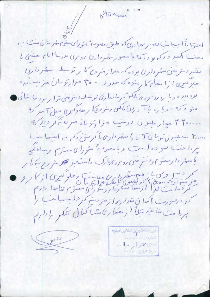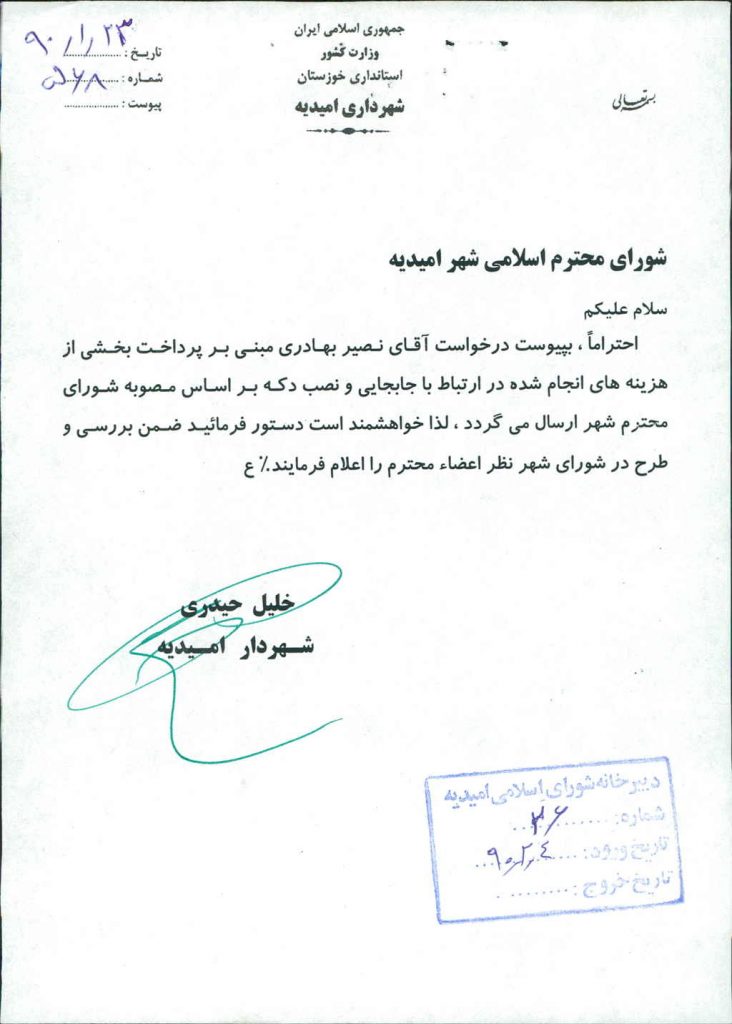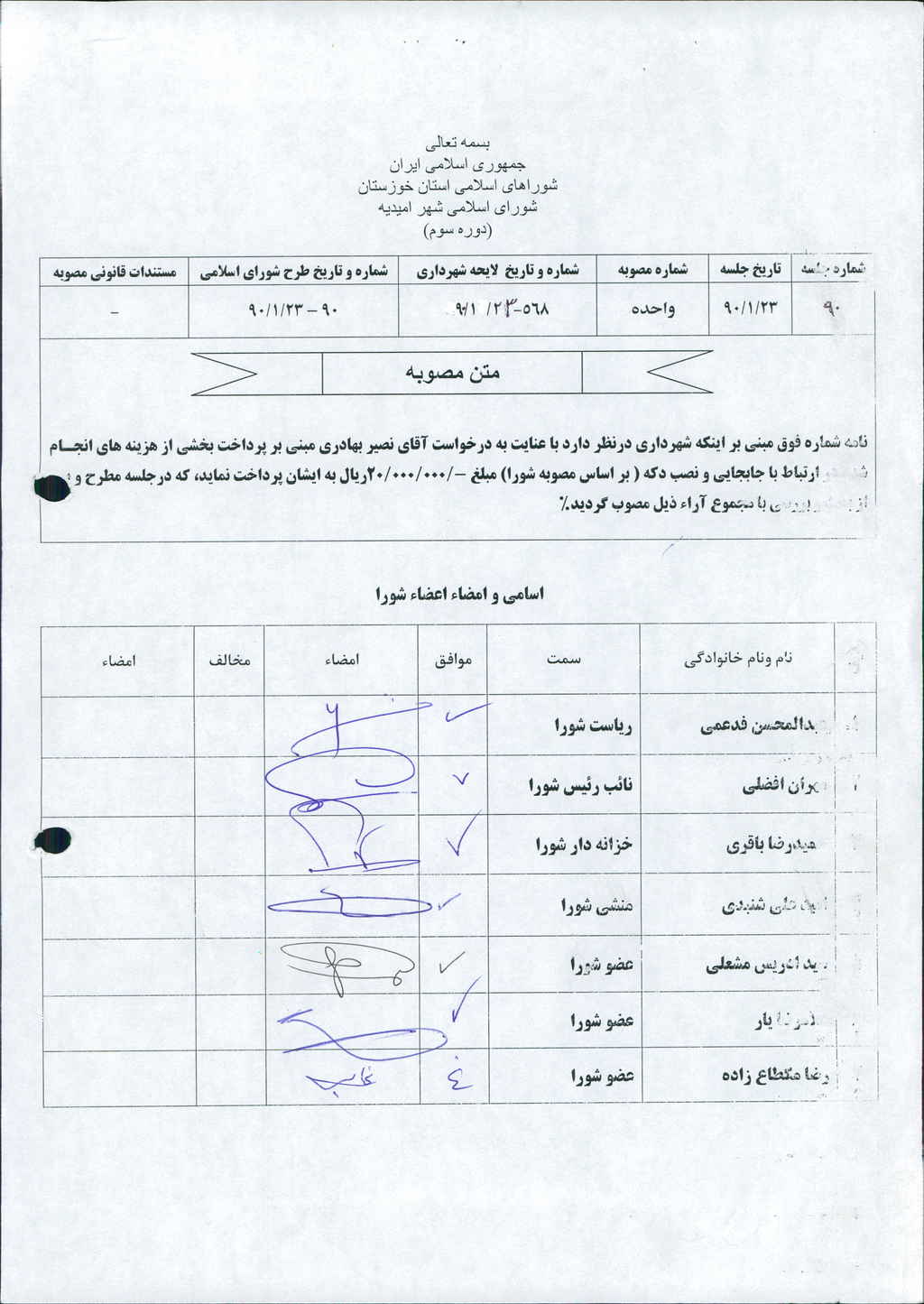 مصوبه واحده جلسه شماره ۹۰ شورای اسلامی شهر امیدیه