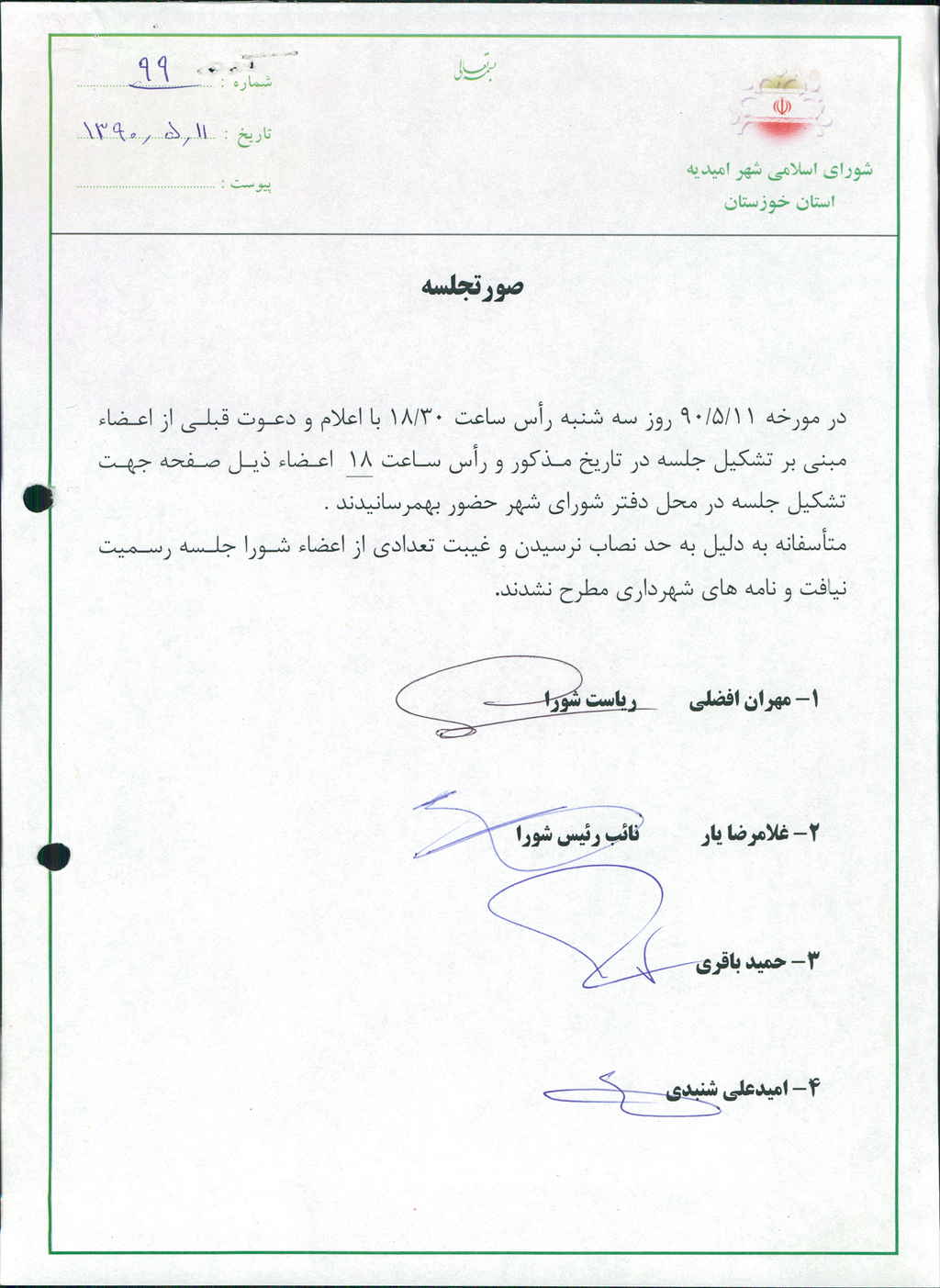 مصوبه واحده جلسه شماره ۹۹ شورای اسلامی شهر امیدیه
