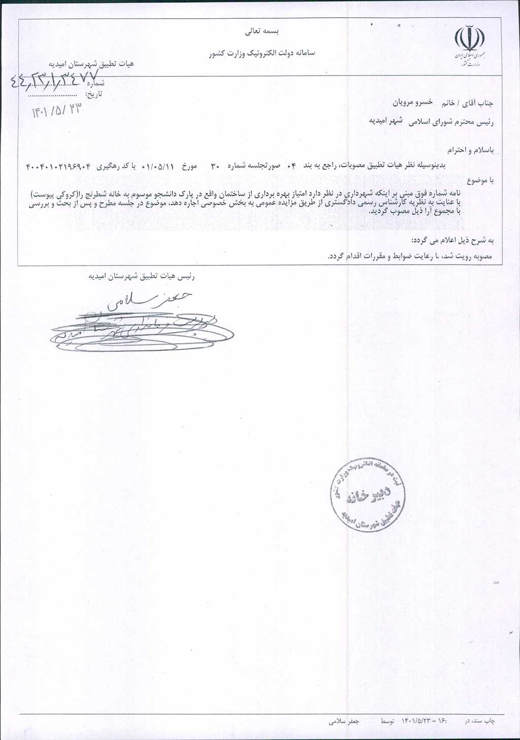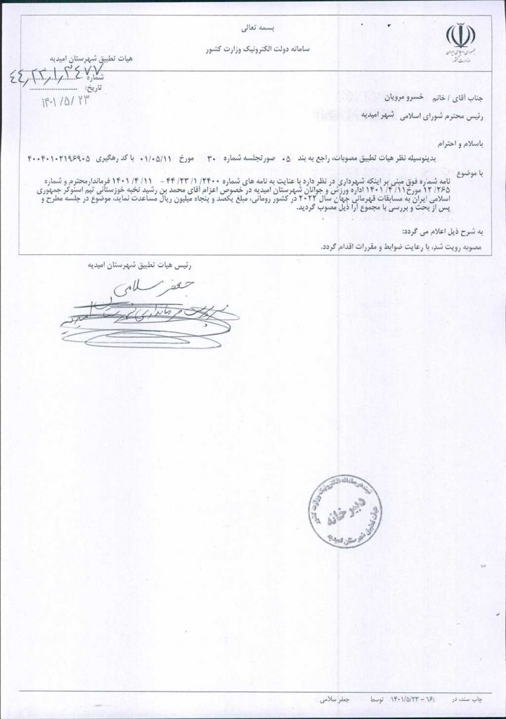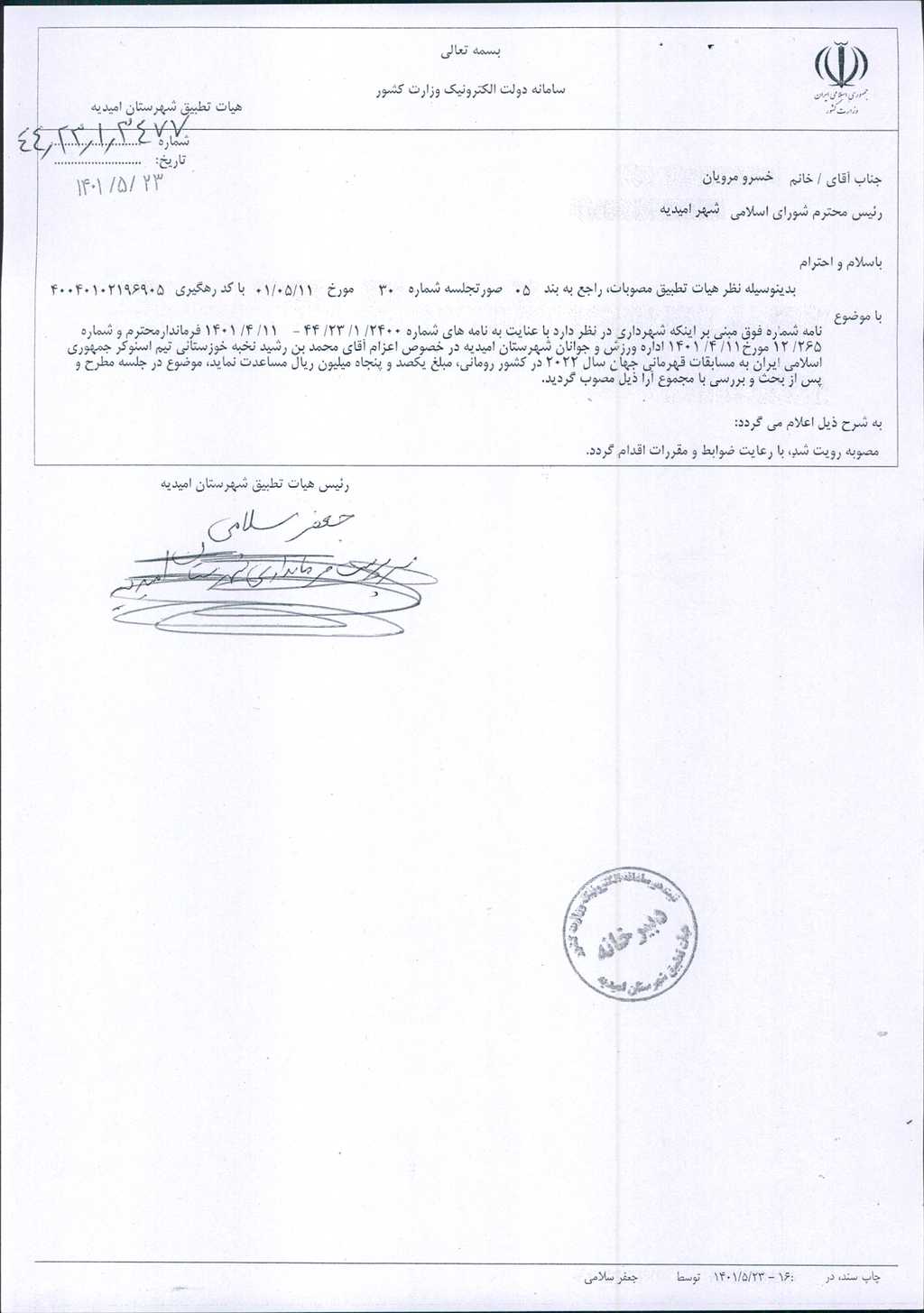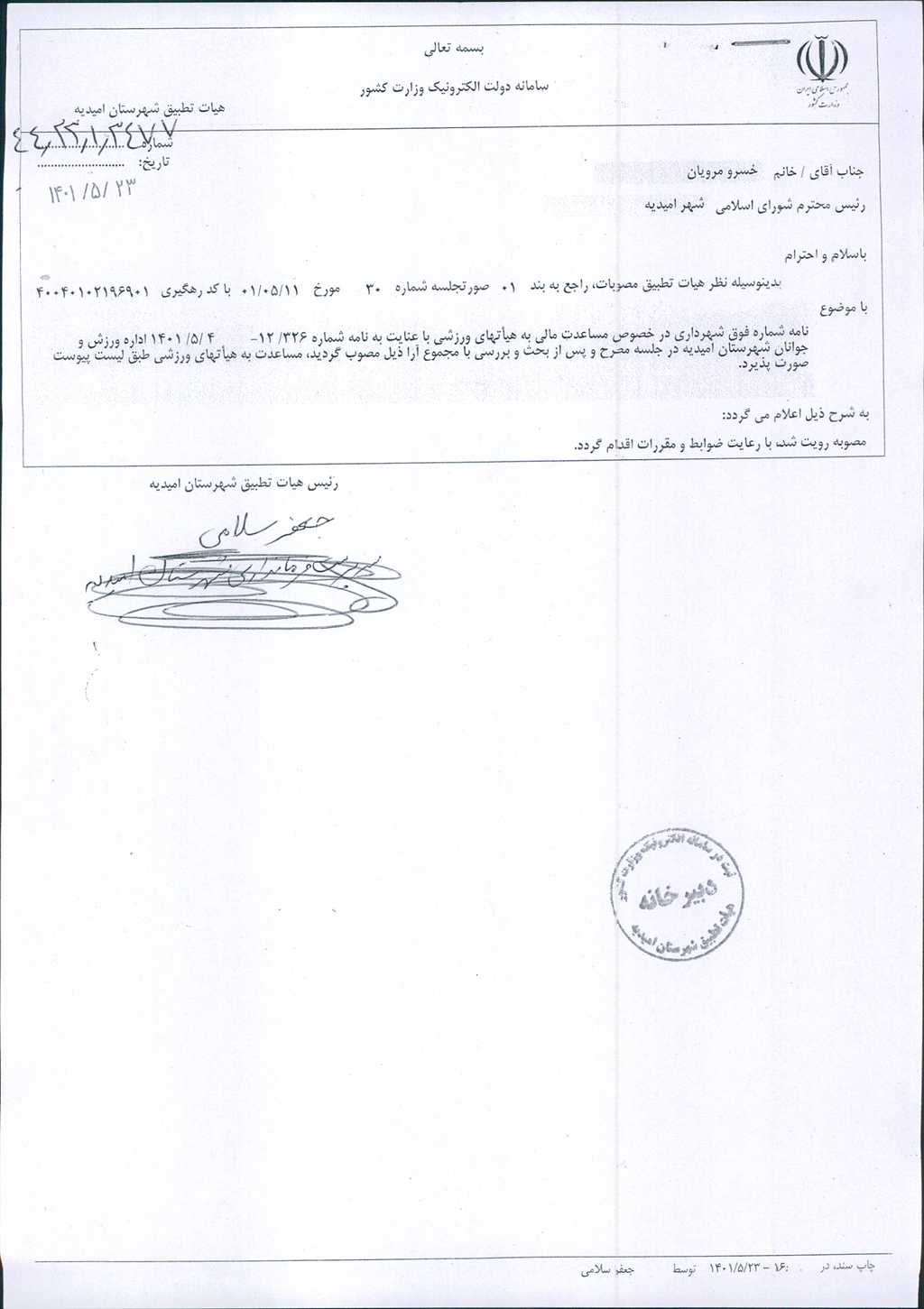 نظریه هیأت تطبیق جلسه شماره ۳۰ مورخ ۱۴۰۱/۵/۱۱ شورای اسلامی شهر امیدیه