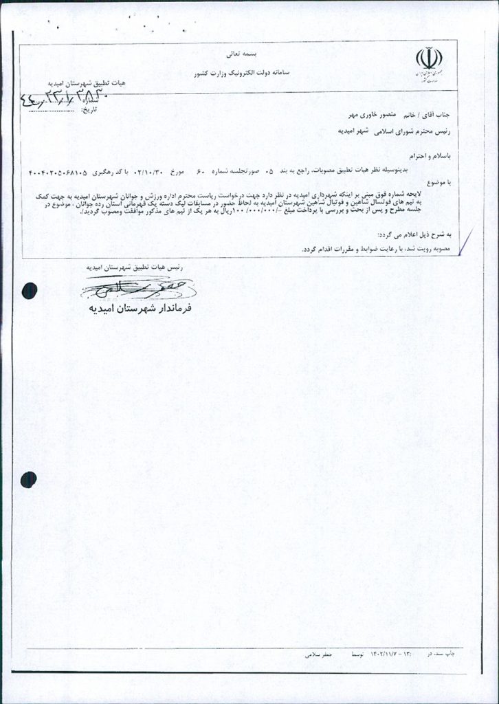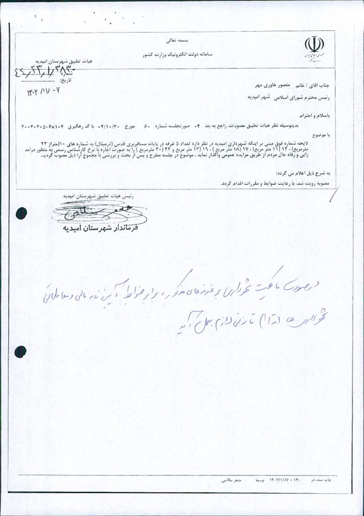 نظریه هیأت تطبیق جلسه شماره ۹۸ مورخ ۱۴۰۴/۹/۱۷ شورای اسلامی شهر امیدیه