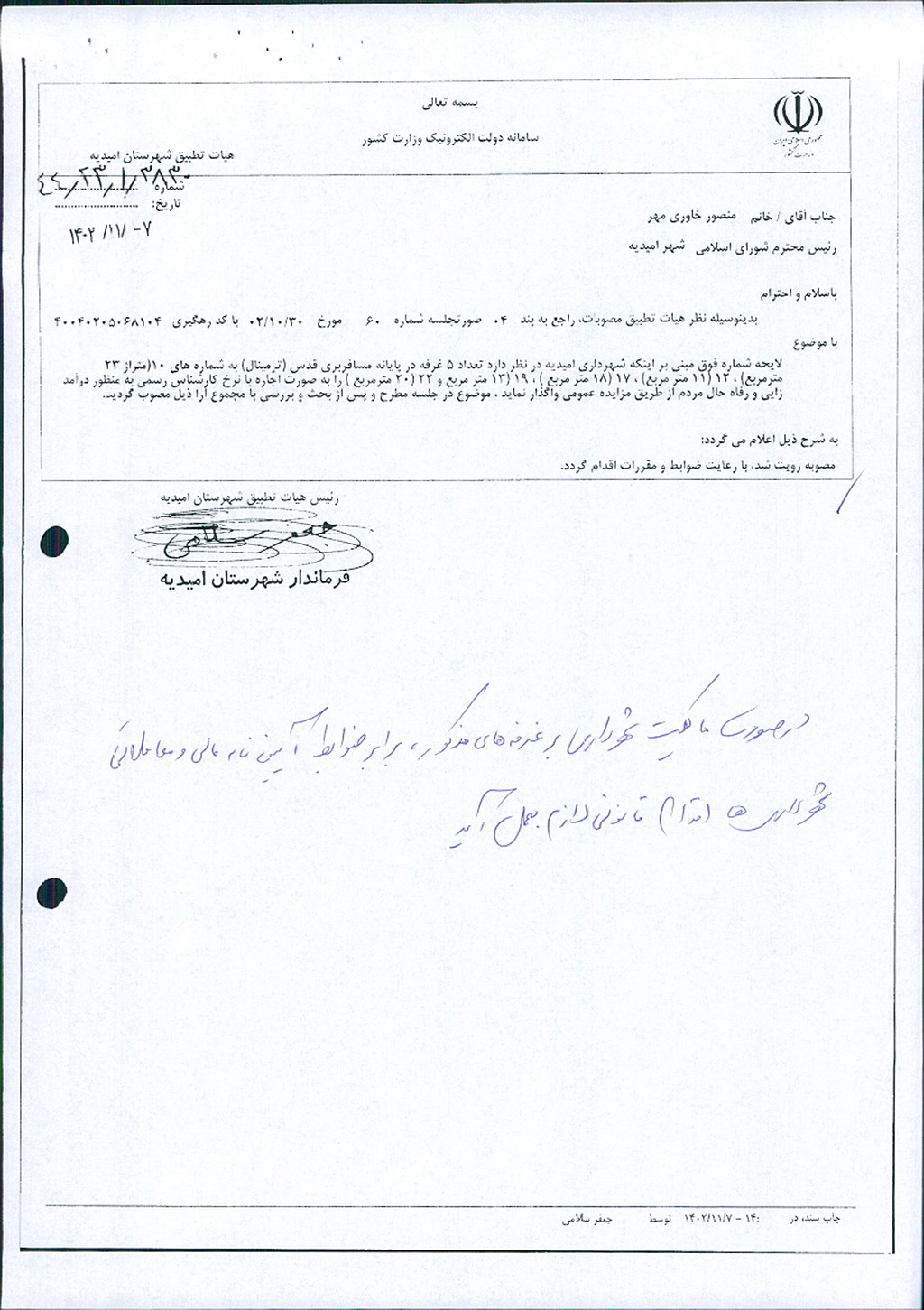 نظریه هیأت تطبیق جلسه شماره ۹۷ مورخ ۱۴۰۴/۸/۱۲ شورای اسلامی شهر امیدیه