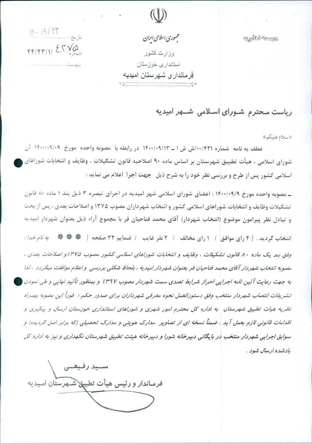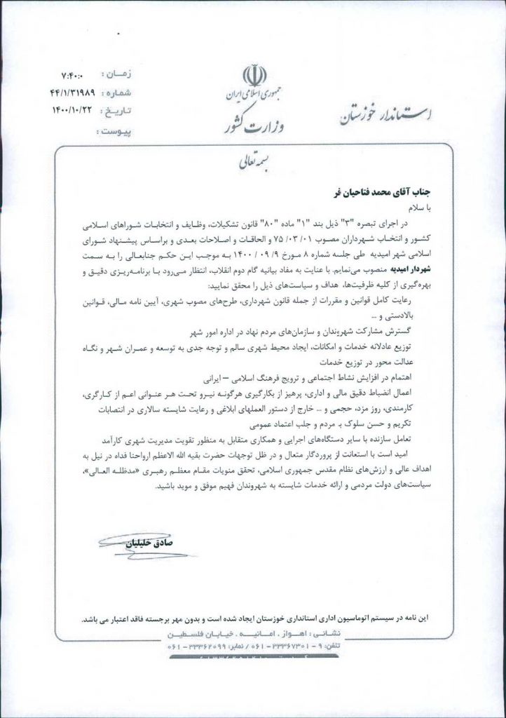 نویسنده شورای اسلامی شهر امیدیه