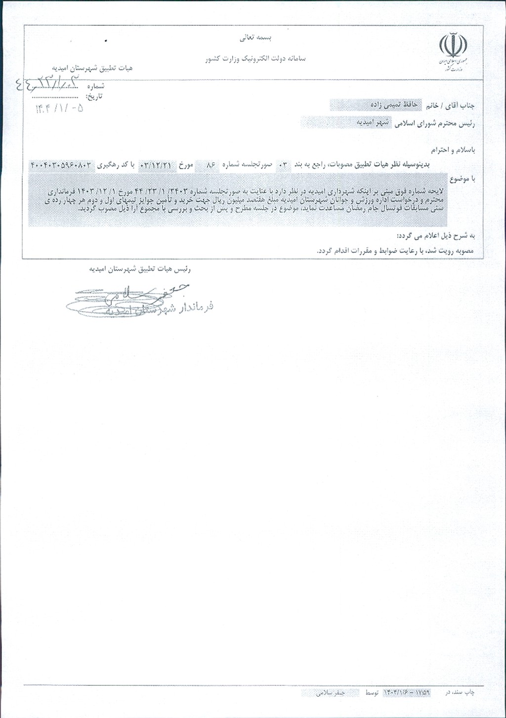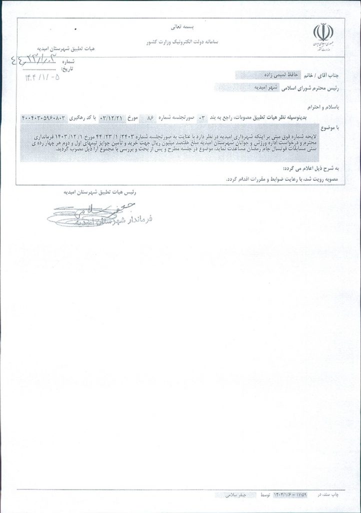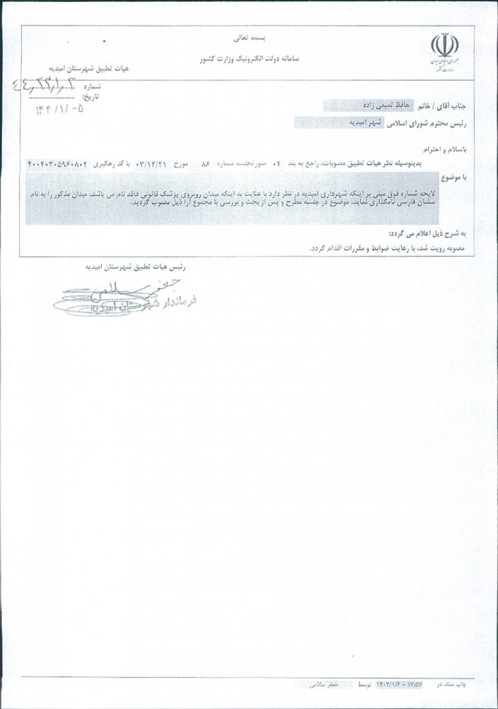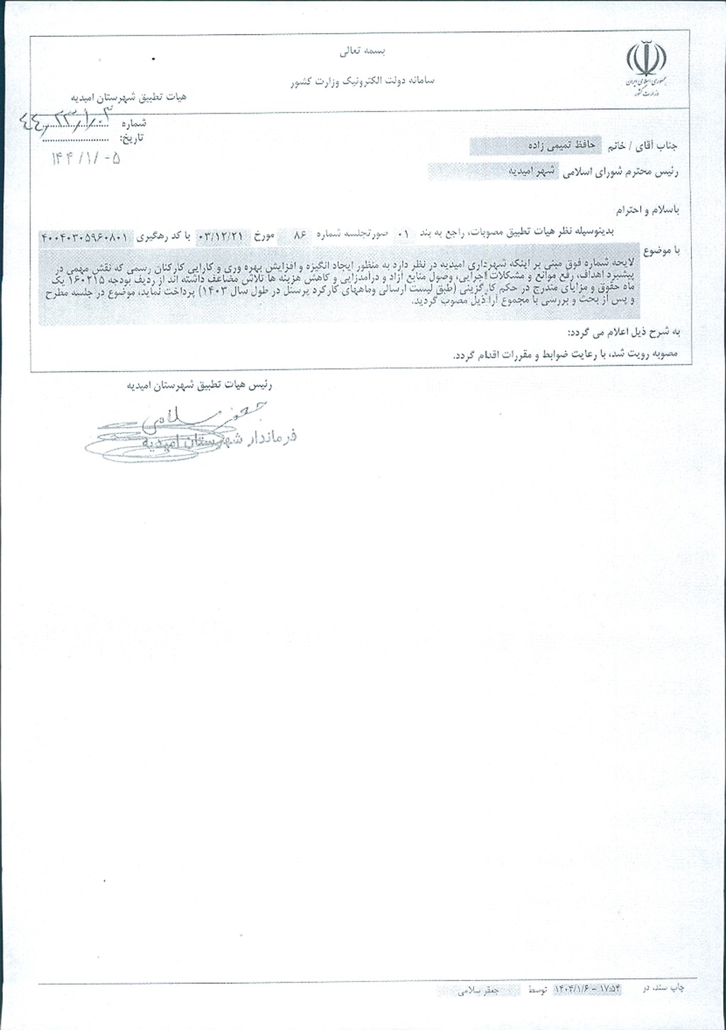 نظریه هیأت تطبیق جلسه شماره ۸۶ مورخ ۱۴۰۳/۱۲/۲۱ شورای اسلامی شهر امیدیه
