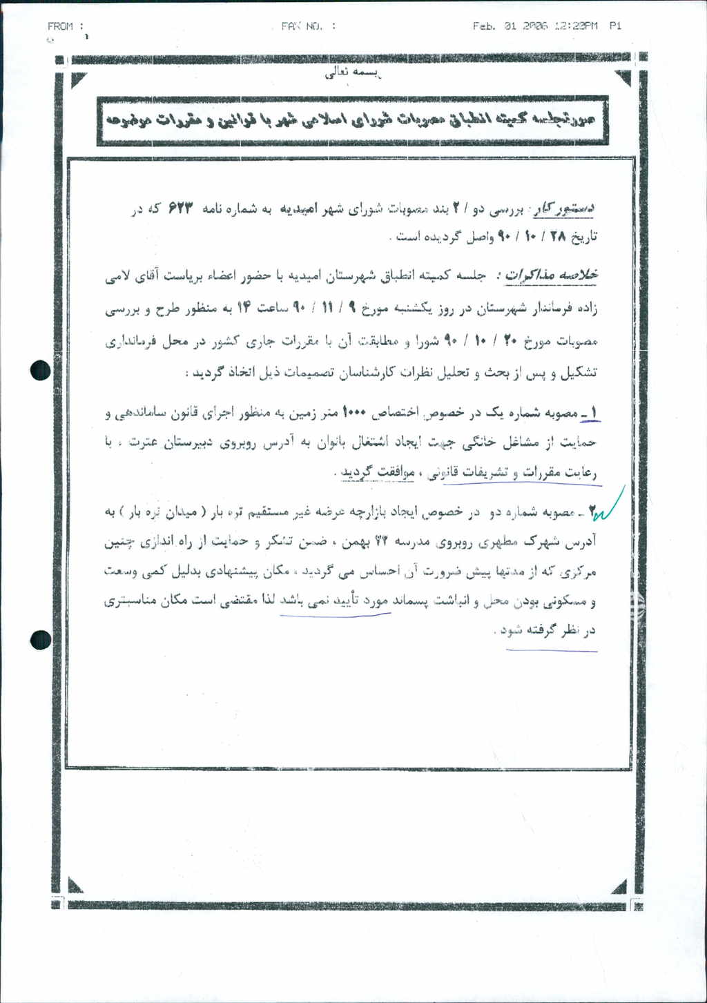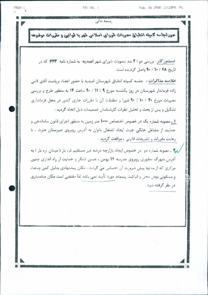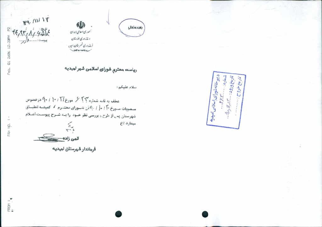 نظریه هیأت تطبیق جلسه ۱۱۷ مورخ ۹۰/۱۰/۲۰ شورای اسلامی شهر امیدیه