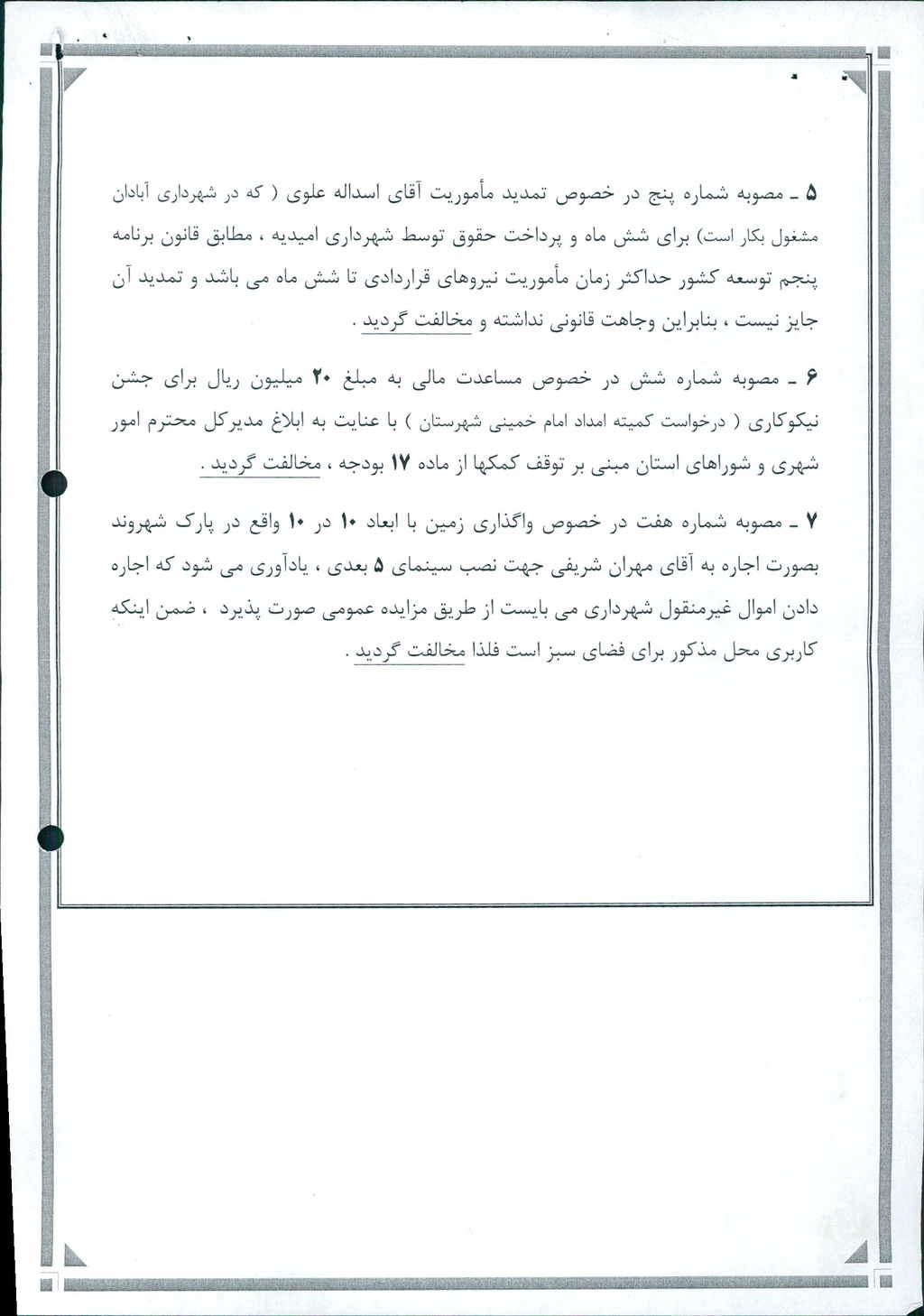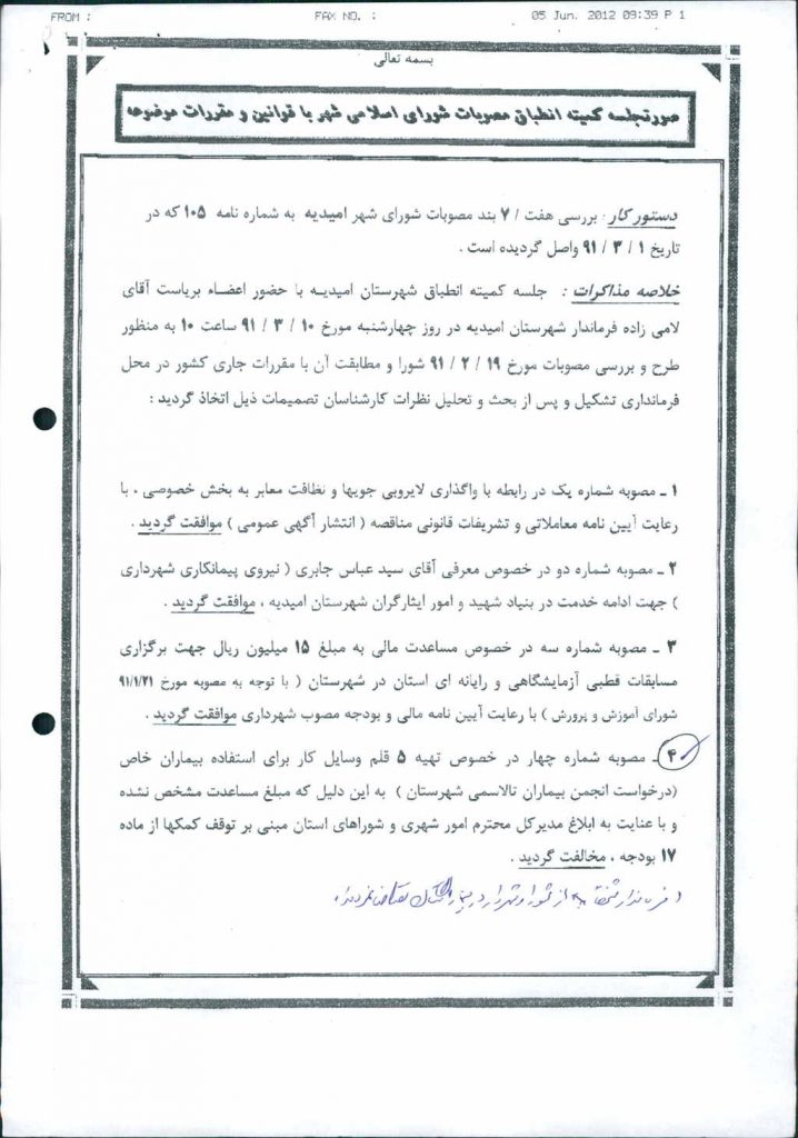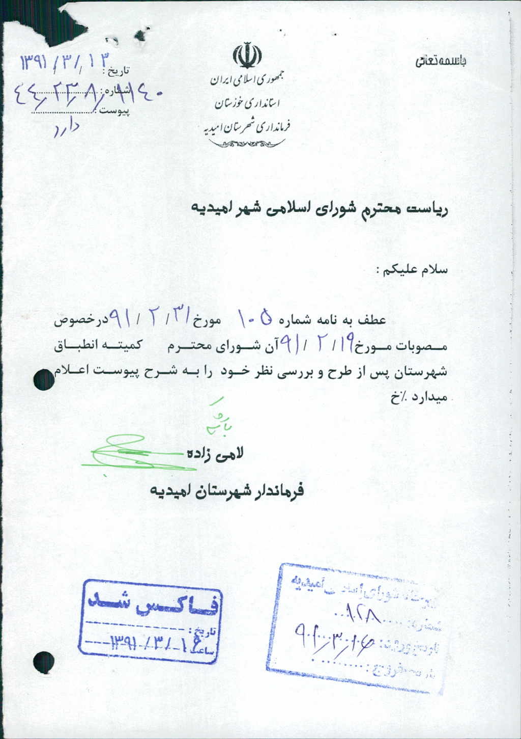 نظریه هیأت تطبیق جلسه ۱۲۶ مورخ ۹۱/۲/۱۹ شورای اسلامی شهر امیدیه