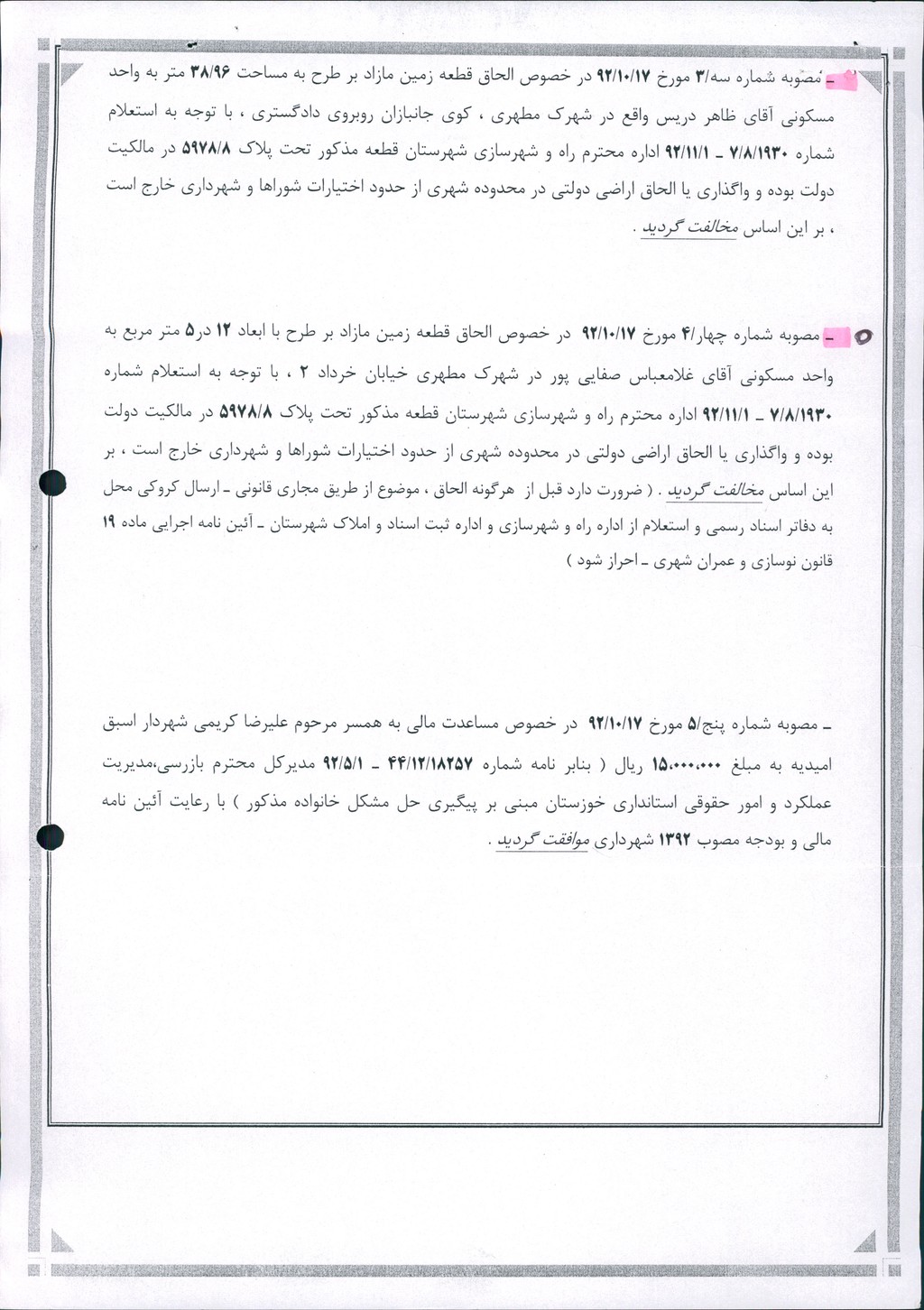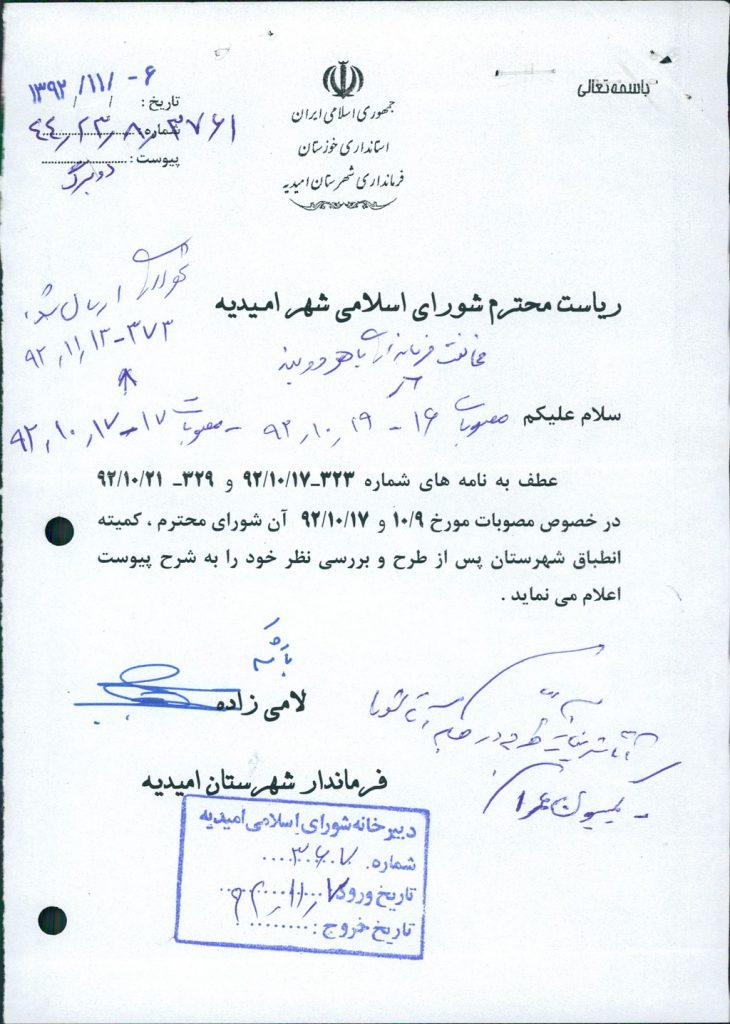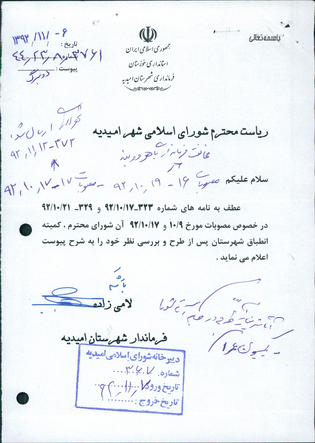 نظریه هیأت تطبیق جلسه ۱۶ مورخ ۹۲/۱۰/۹ شورای اسلامی شهر امیدیه
