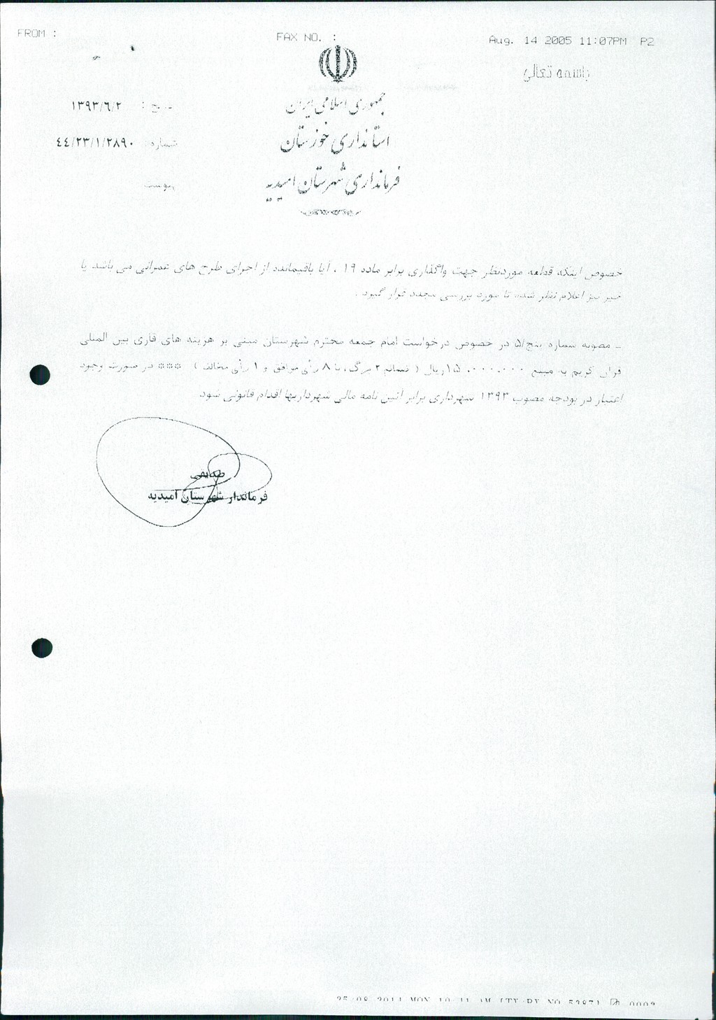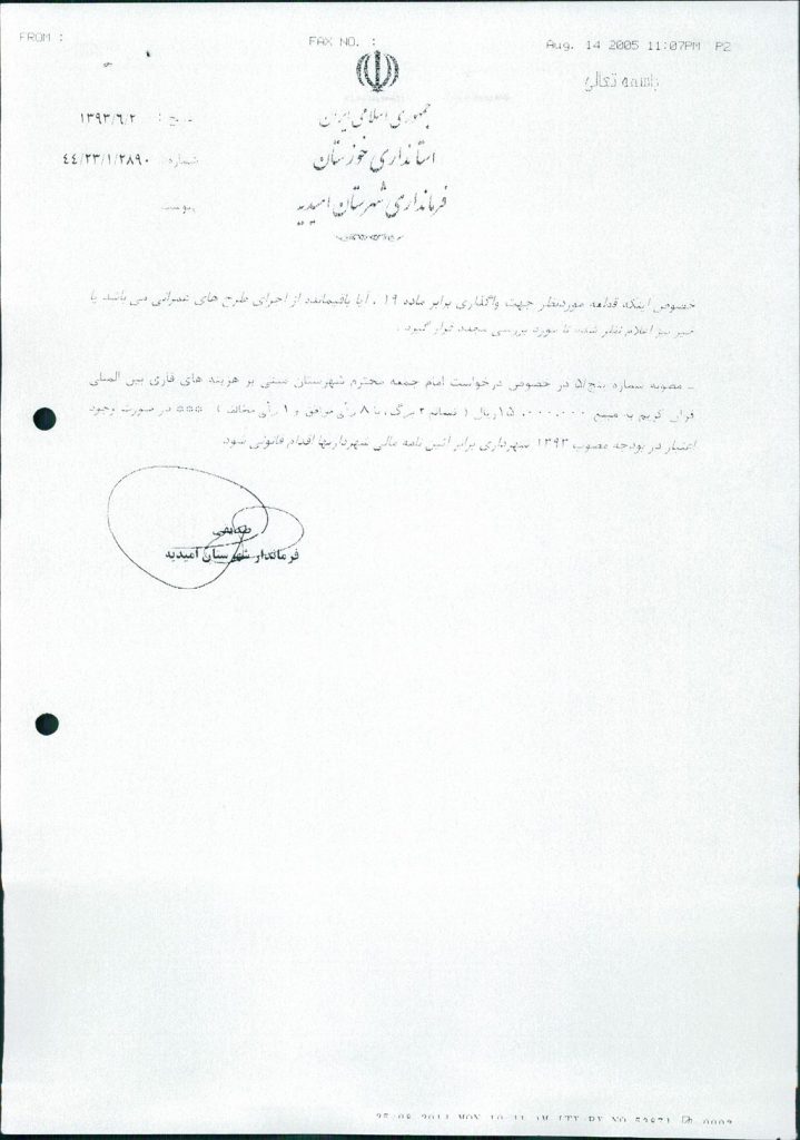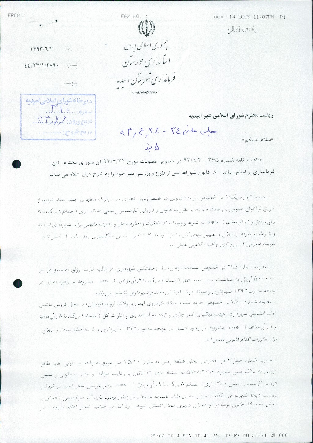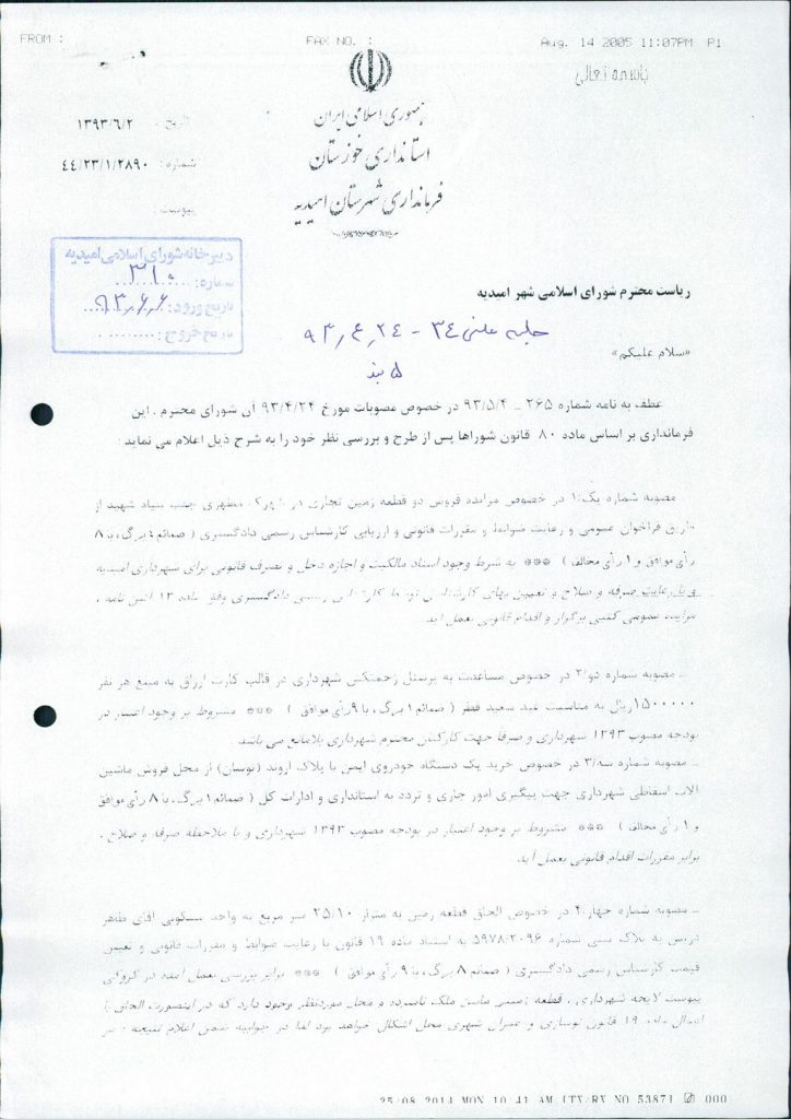 نظریه هیأت تطبیق جلسه ۵۳ مورخ ۹۳/۱۱/۲۷ شورای اسلامی شهر امیدیه
