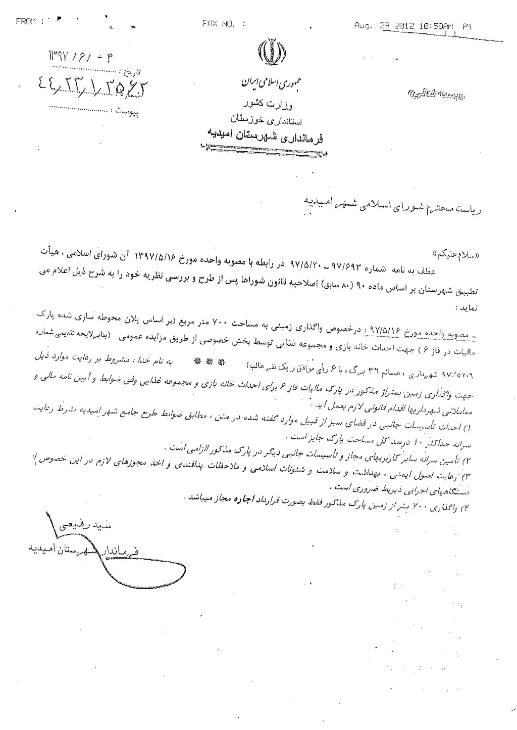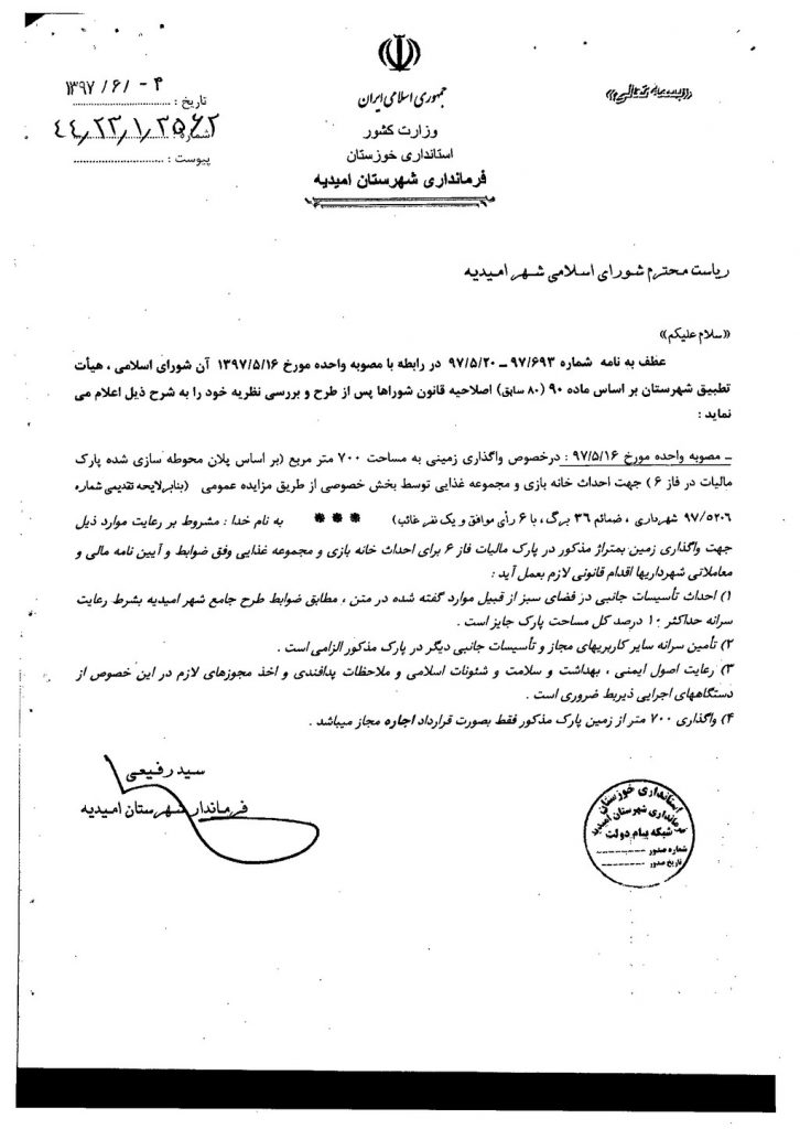 نظریه هیأت تطبیق جلسه ۳۷ مورخ ۹۷/۵/۱۶ شورای اسلامی شهر امیدیه