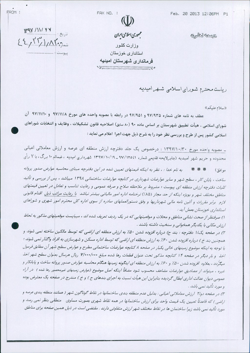 نظریه هیأت تطبیق جلسه ۵۱ مورخ ۹۷/۱۰/۳۰ شورای اسلامی شهر امیدیه