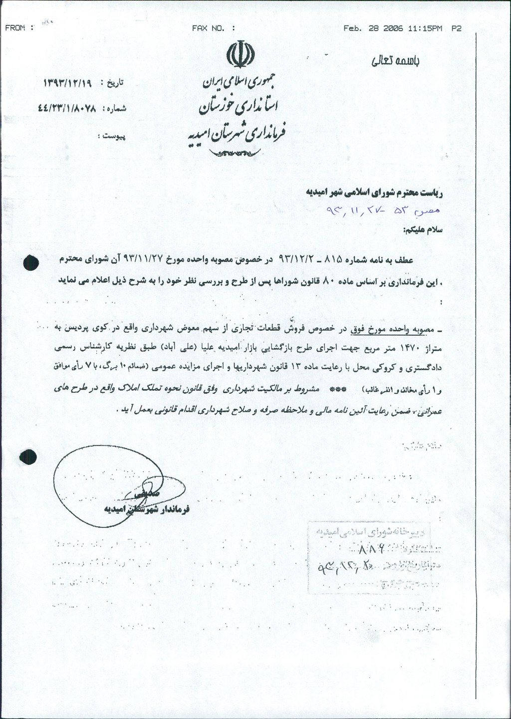 نظریه هیأت تطبیق جلسه ۵۳ مورخ ۹۳/۱۱/۲۷ شورای اسلامی شهر امیدیه