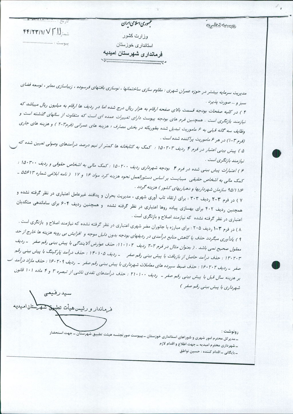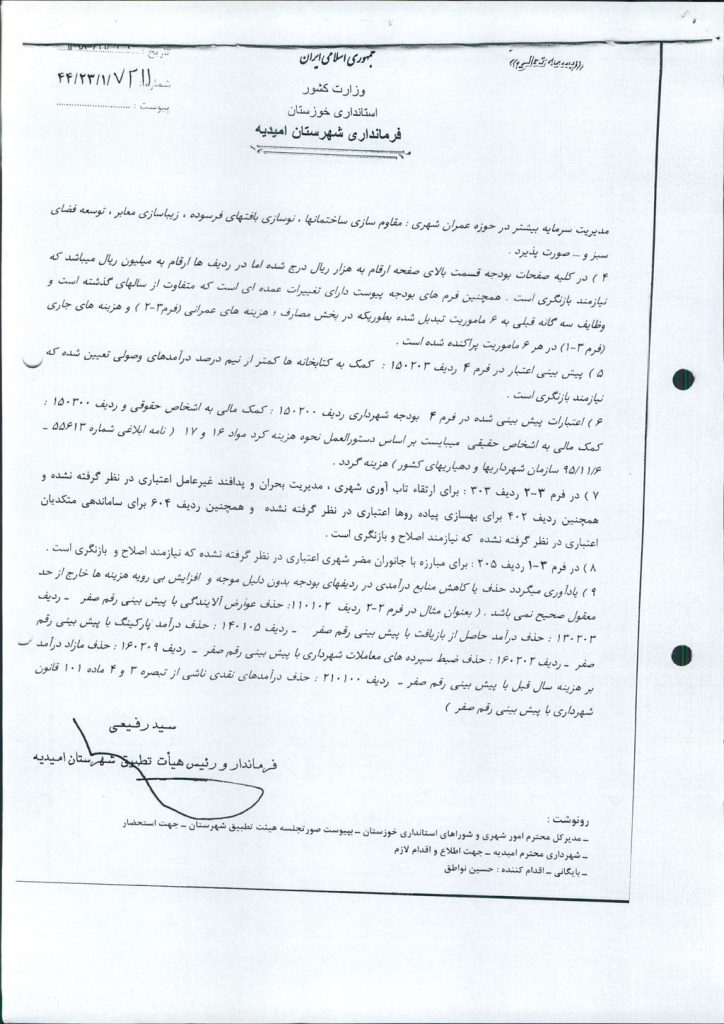 نظریه هیأت تطبیق جلسه شماره ۹۷ مورخ ۱۴۰۴/۸/۱۲ شورای اسلامی شهر امیدیه