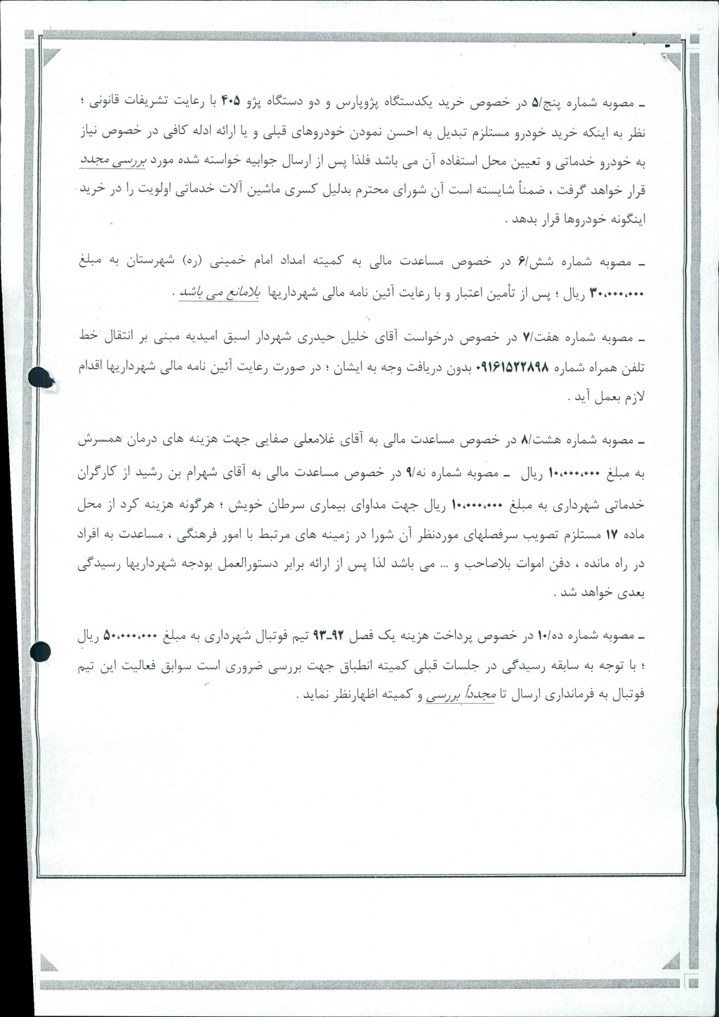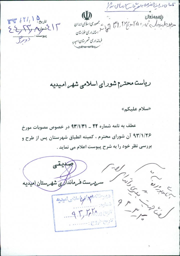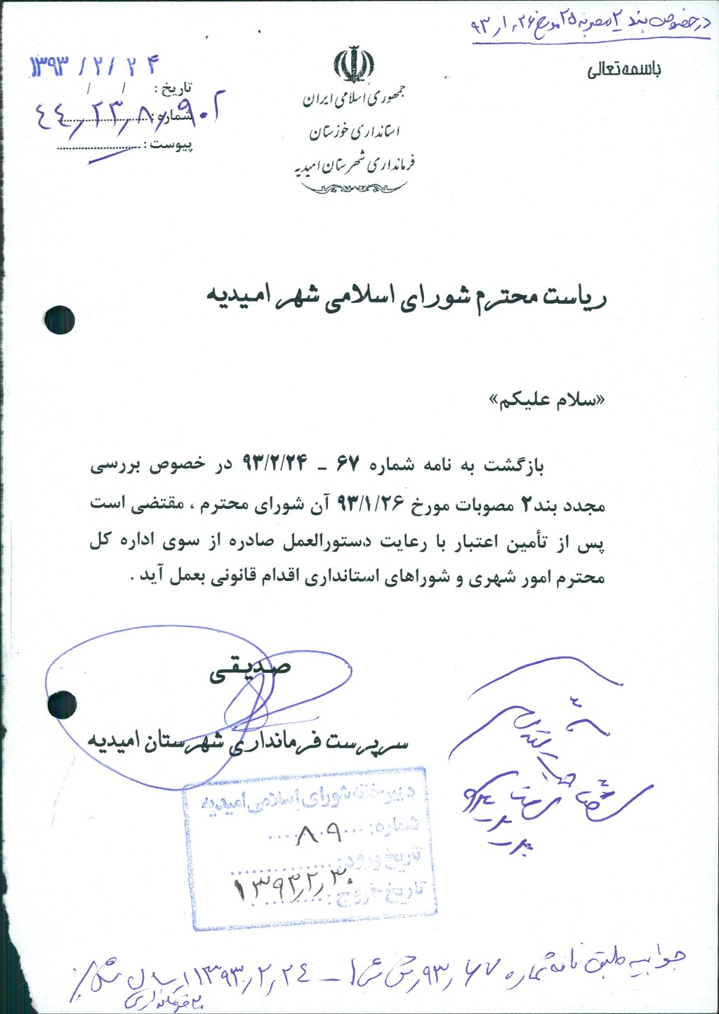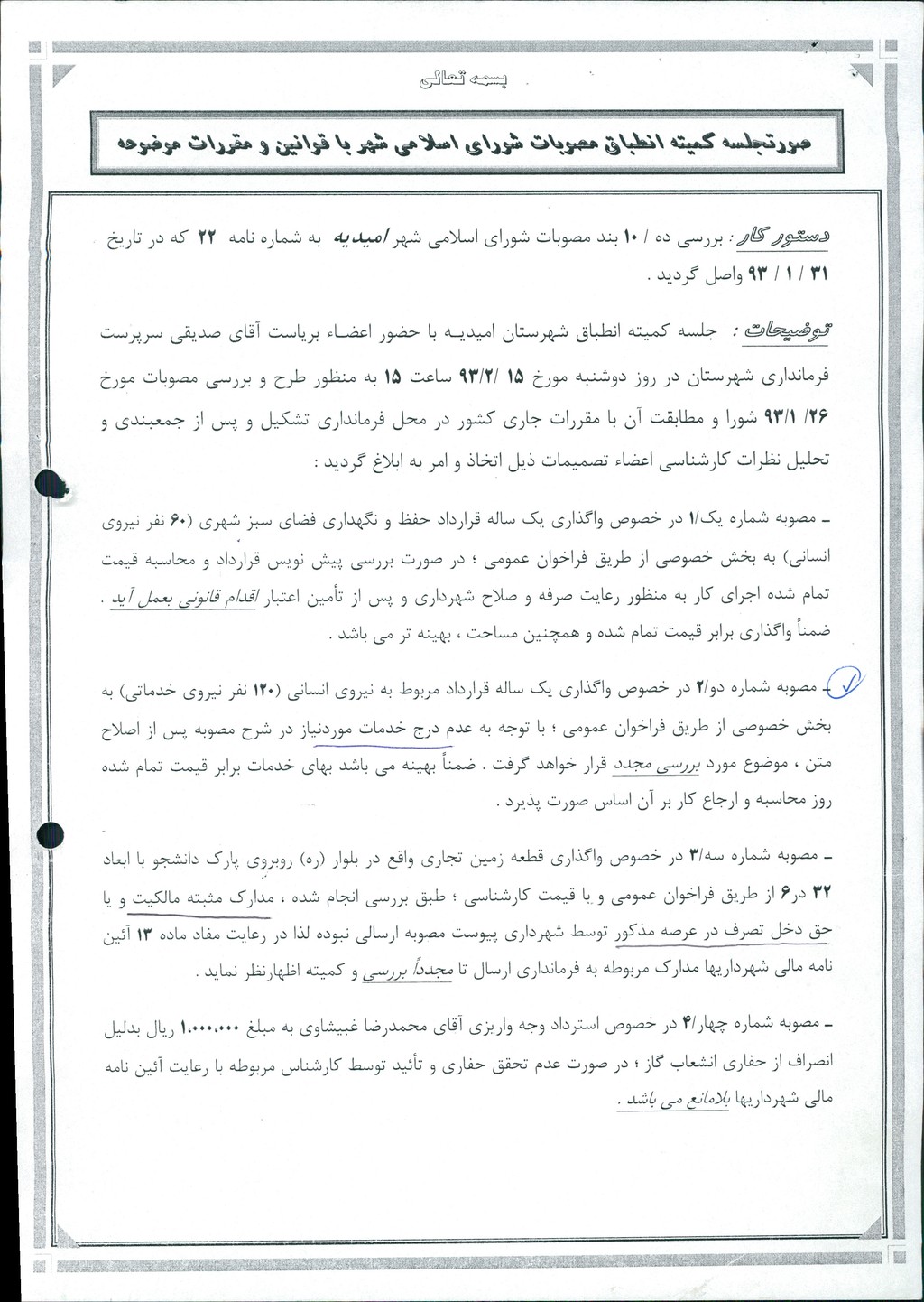 نظریه هیأت تطبیق جلسه۲۵ مورخ ۹۳/۱/۲۶ شورای اسلامی شهر امیدیه