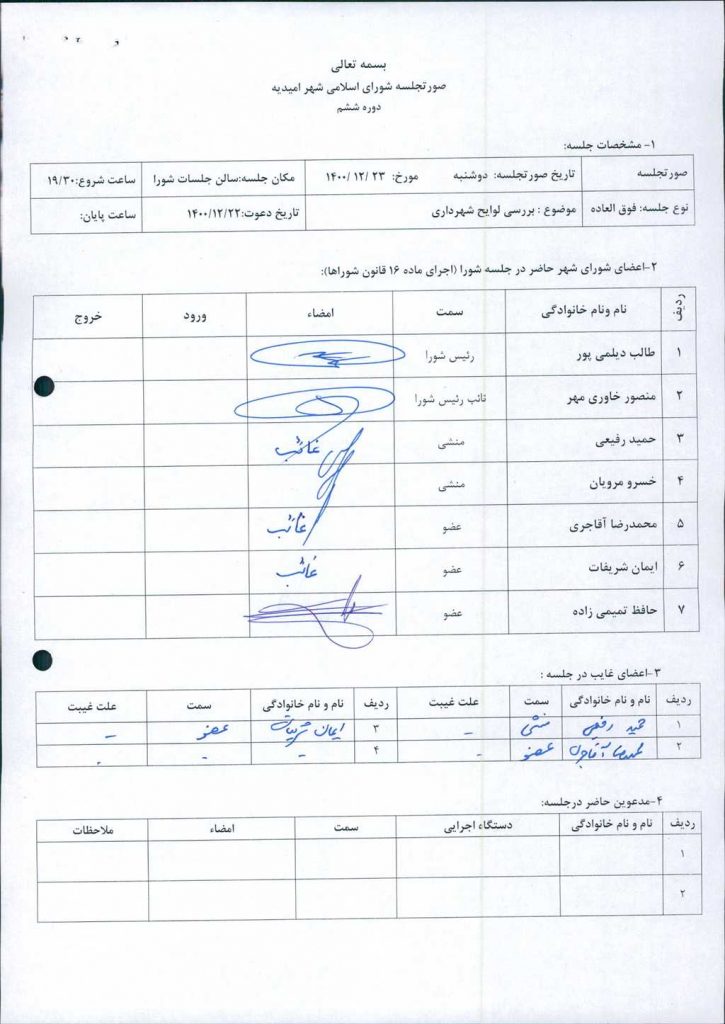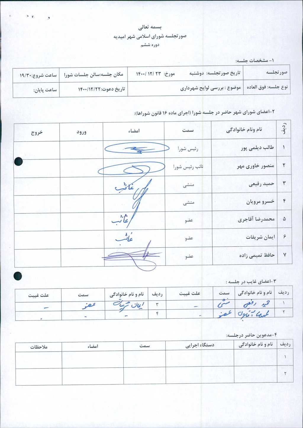 بسم الله الرحمن الرحیم گزارش جلسه مورخ ۱۴۰۰/۱۲/۲۳ شورای اسلامی شهر امیدیه